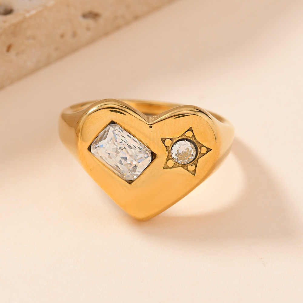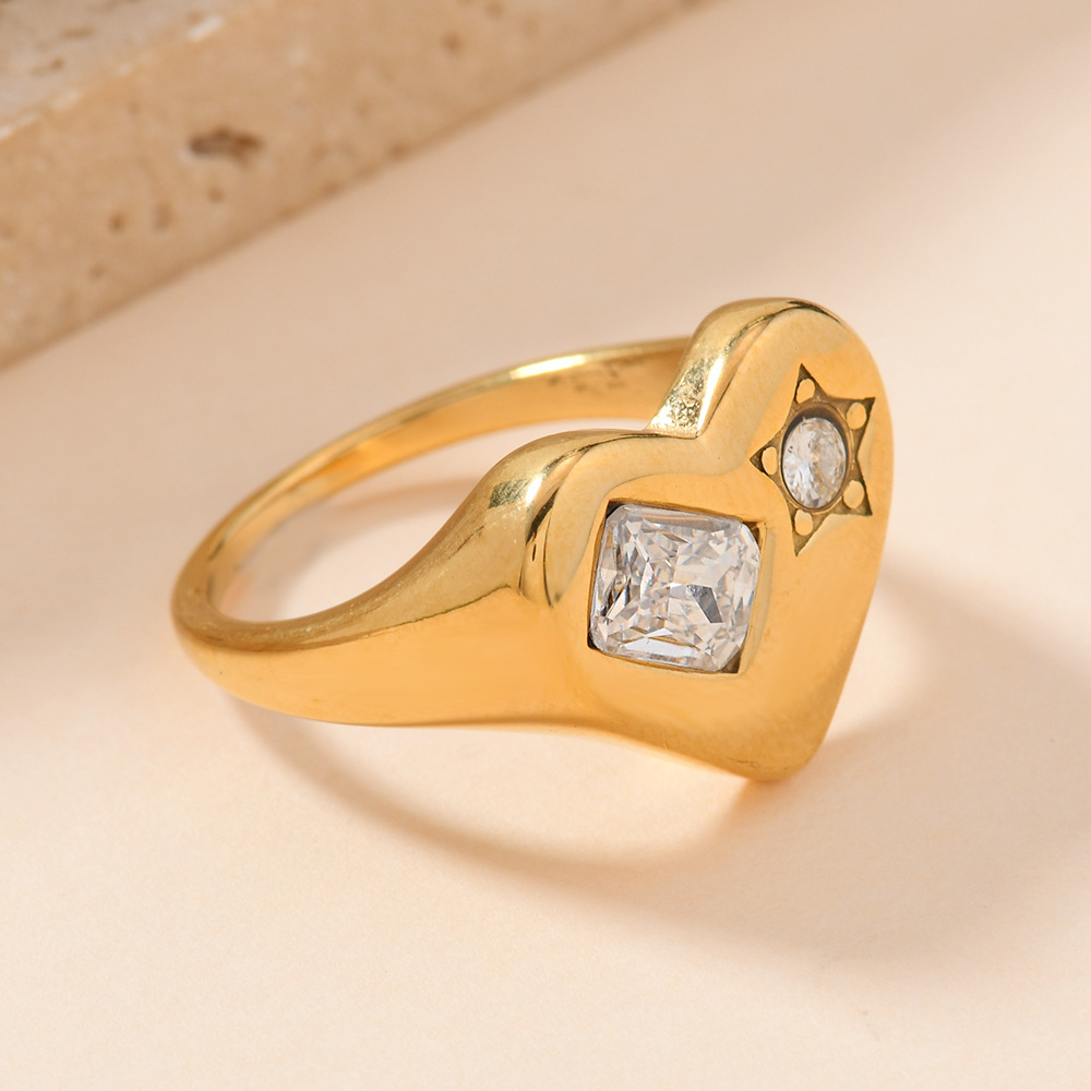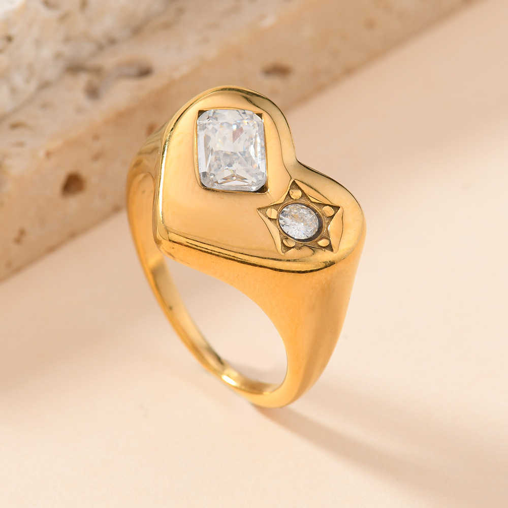 Rhinestone-Edelstahl -Finger-Ring, 304 Edelstahl, plattiert, verschiedene Größen vorhanden & für Frau & mit Strass, goldfarben, verkauft von PC