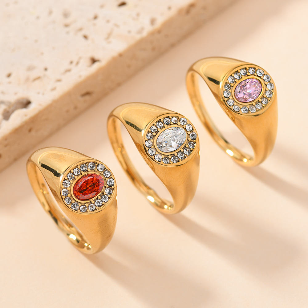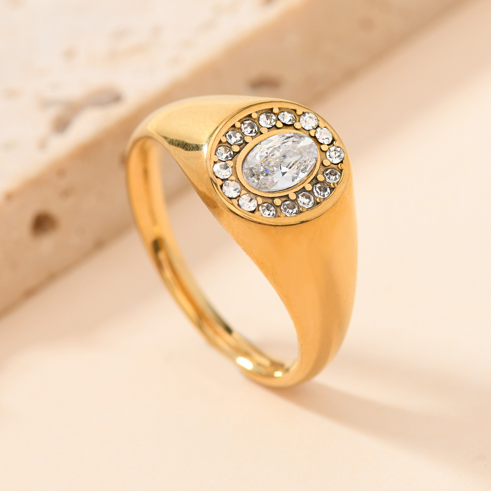 Rhinestone-Edelstahl -Finger-Ring, 304 Edelstahl, mit kubischer Zirkonia, goldfarben plattiert, unisex & verschiedene Größen vorhanden & mit Strass, keine, verkauft von PC