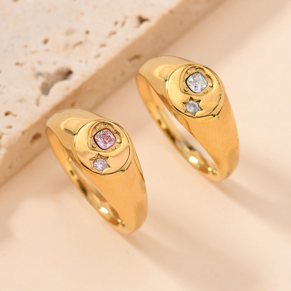 Rhinestone-Edelstahl -Finger-Ring, 304 Edelstahl, plattiert, verschiedene Größen vorhanden & für Frau & mit Strass, keine, verkauft von PC
