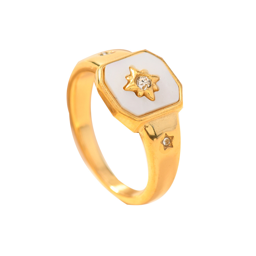 Rhinestone-Edelstahl -Finger-Ring, 304 Edelstahl, mit Weiße Muschel, goldfarben plattiert, Modeschmuck & für Frau & mit Strass, Größe:8, verkauft von PC