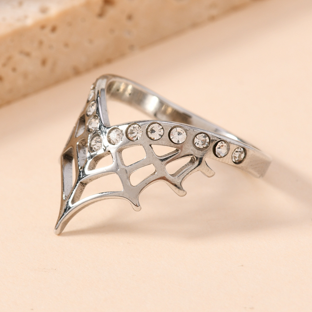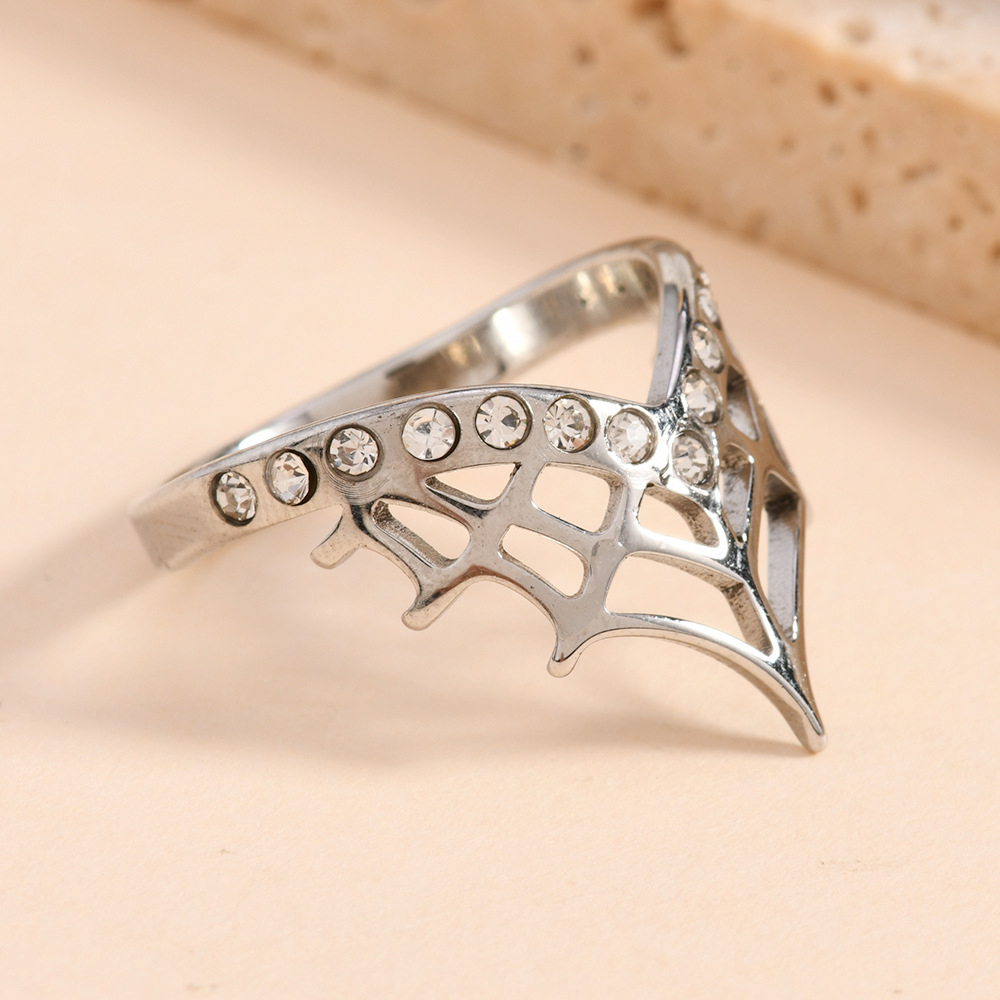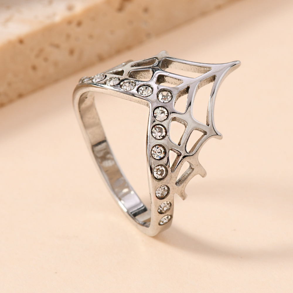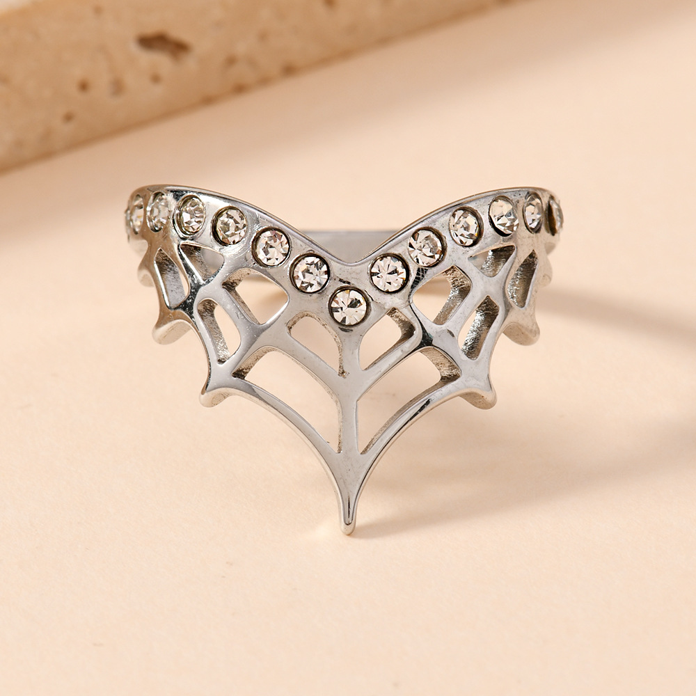 Rhinestone-Edelstahl -Finger-Ring, 304 Edelstahl, plattiert, unisex & mit Strass & hohl, originale Farbe, Größe:7, verkauft von PC