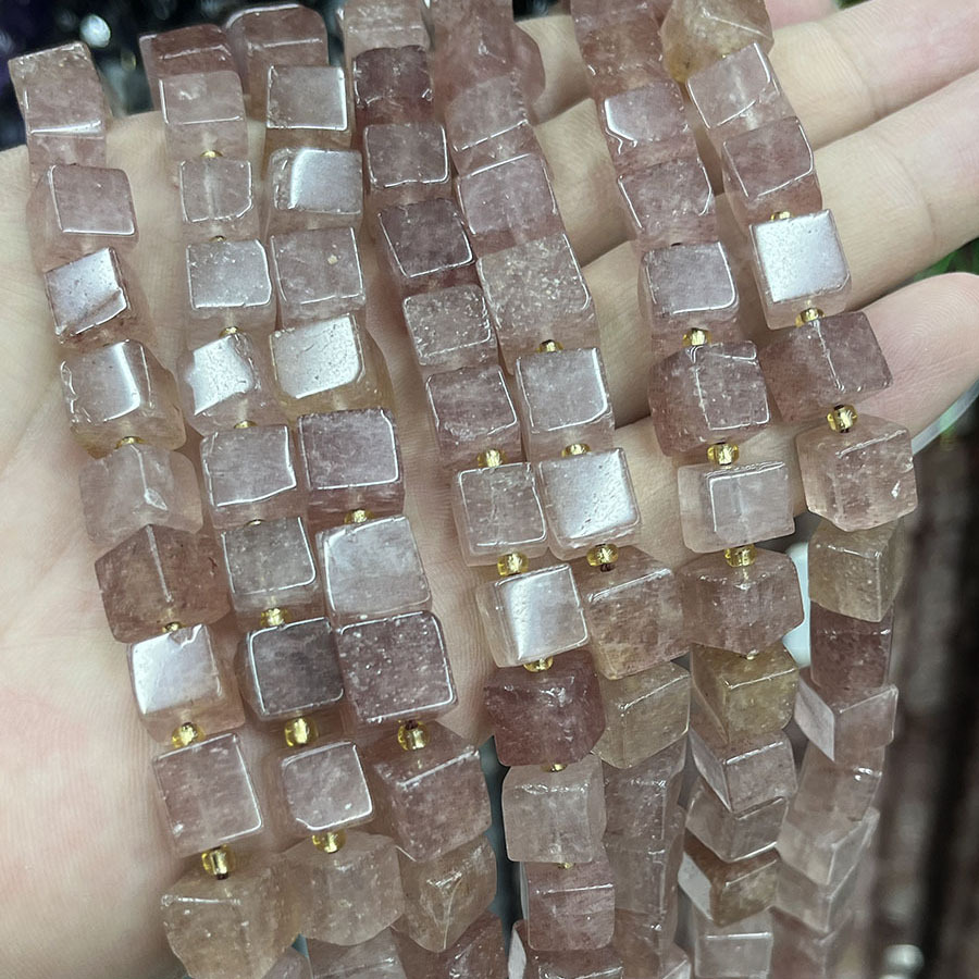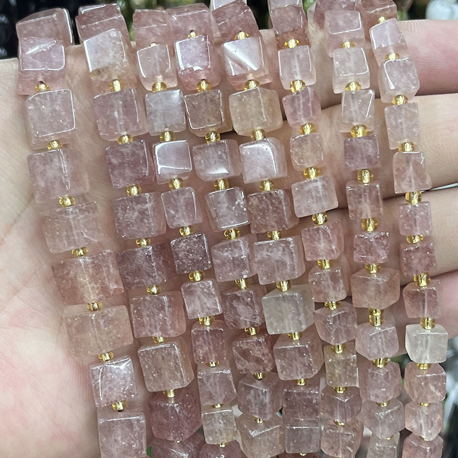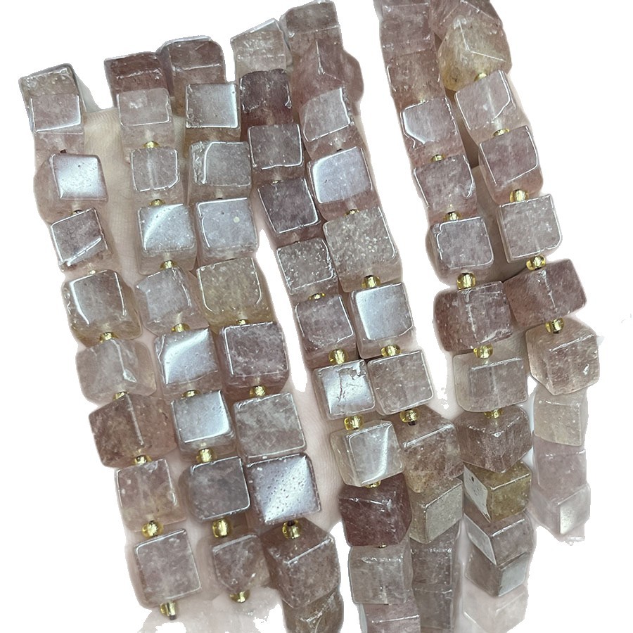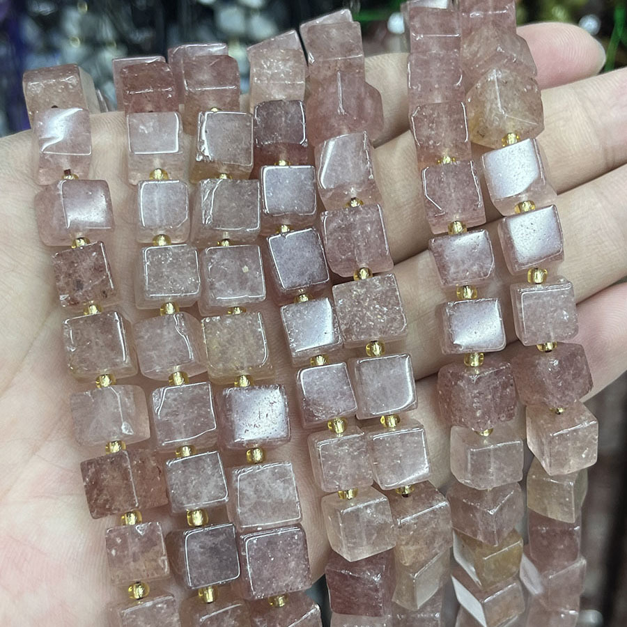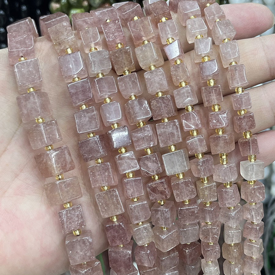 Strawberry Quartz Perle, mit Seedbead, Quadrat, DIY, gemischte Farben, verkauft per ca. 38 cm Strang