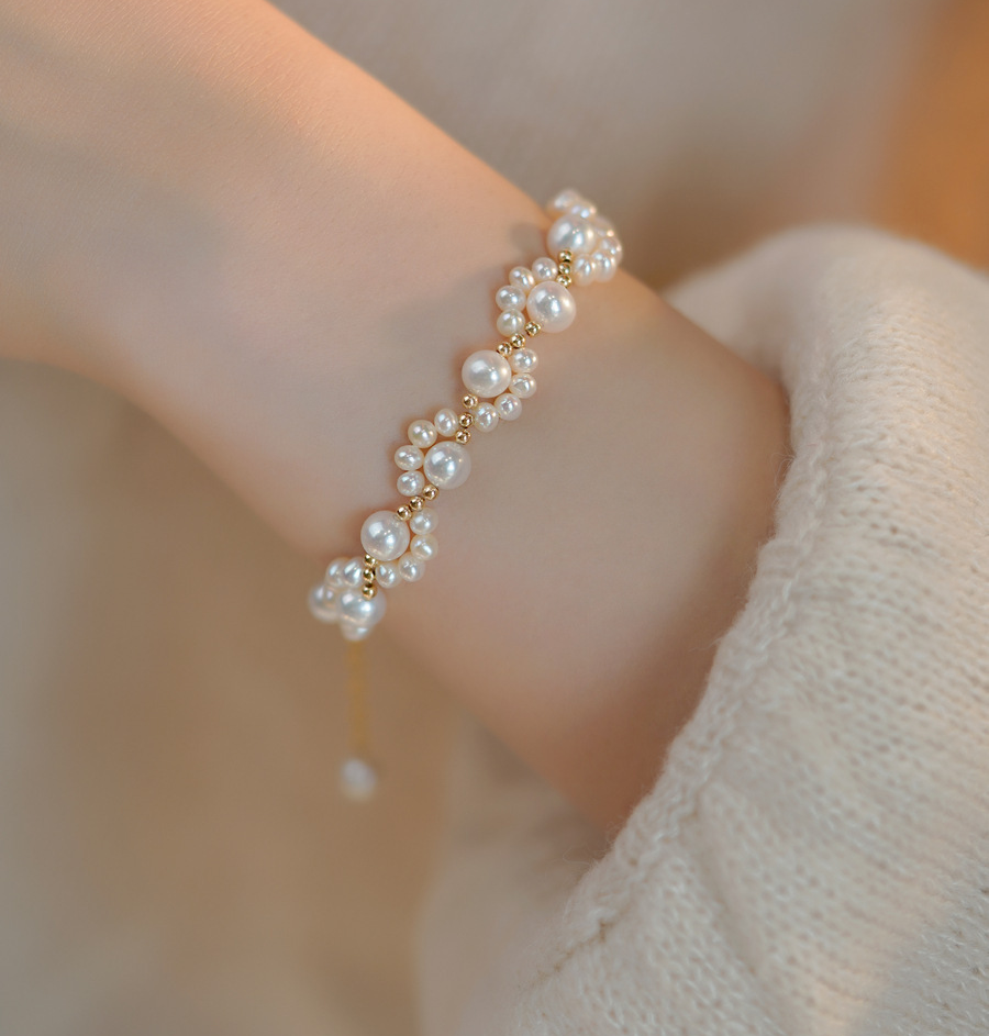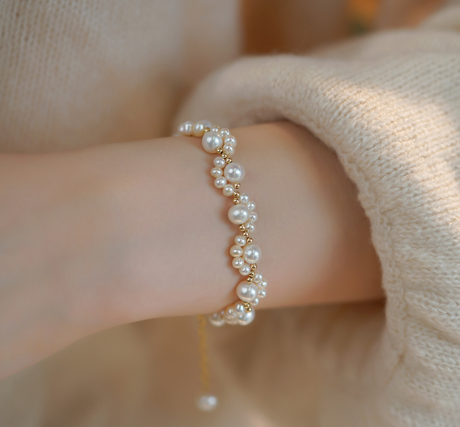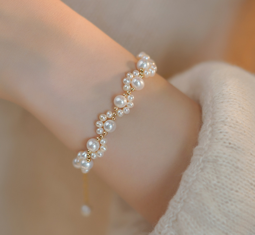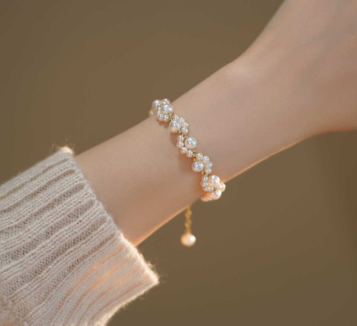 Süßwasser Zuchtperlen Armband, Natürliche kultivierte Süßwasserperlen, mit Messing, Barock, plattiert, Modeschmuck, keine, 4-8MM, verkauft per 18 cm Strang