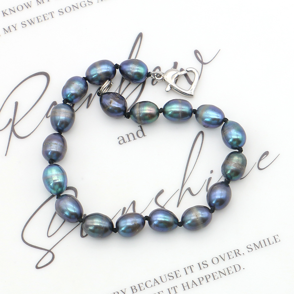Süßwasser Zuchtperlen Armband, Natürliche kultivierte Süßwasserperlen, mit 304 Edelstahl, Reis, Modeschmuck, gemischte Farben, 7-8mm, Länge 18 cm, verkauft von PC