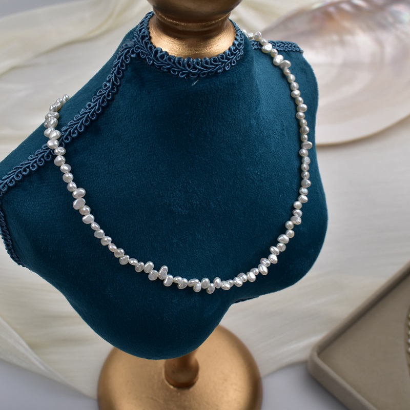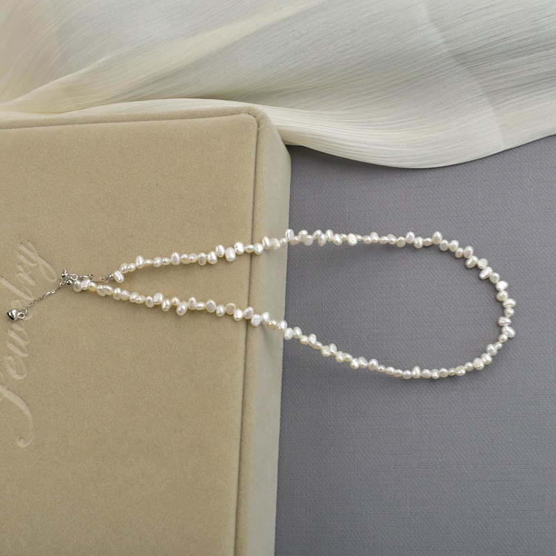 Süßwasserperlen Messing Halskette, Natürliche kultivierte Süßwasserperlen, mit Messing, Barock, plattiert, Modeschmuck, weiß, 4-5mm, Länge 38 cm, verkauft von PC