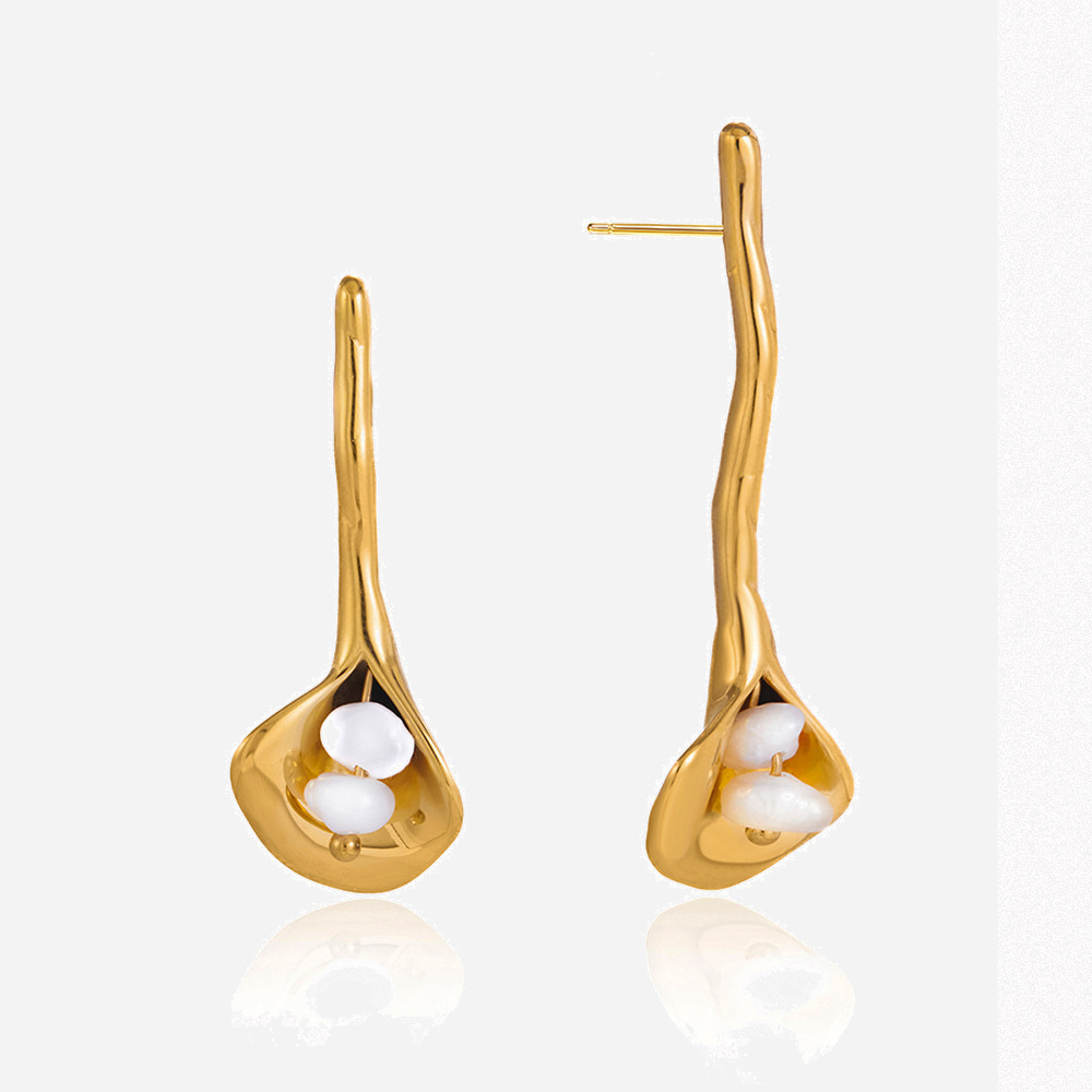 Süßwasserperlen Ohrringe, Edelstahl, mit Natürliche kultivierte Süßwasserperlen, 18K vergoldet, für Frau, weiß, verkauft von Paar