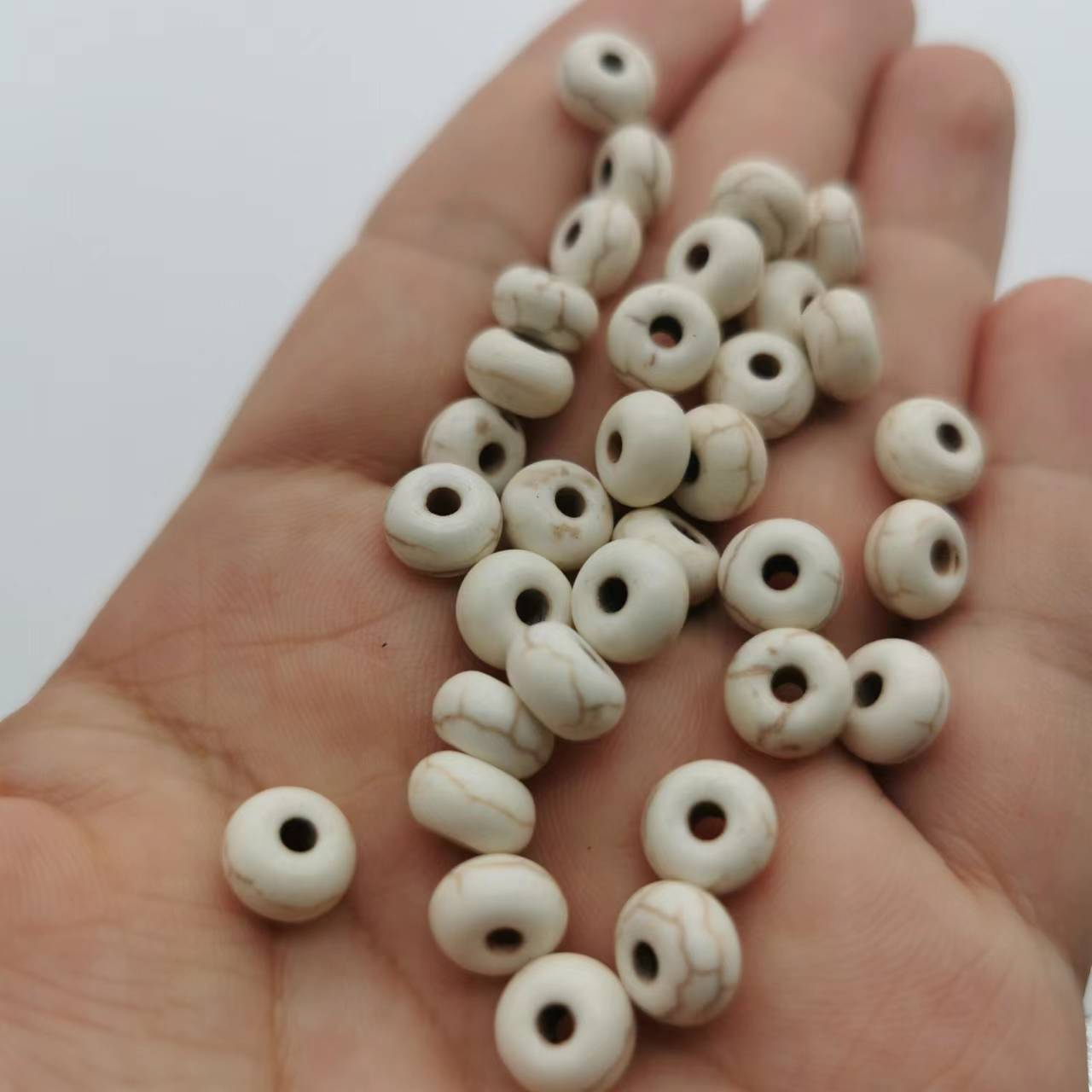 Synthetische Türkis Perle, DIY, weiß, 10x6mm, Bohrung:ca. 2mm, verkauft per ca. 38 cm Strang