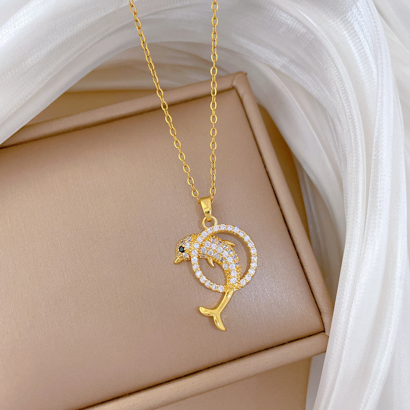 Titanstahl Halskette, mit Messing, Dolphin, Micro pave Zirkonia & für Frau & hohl, goldfarben, verkauft von PC