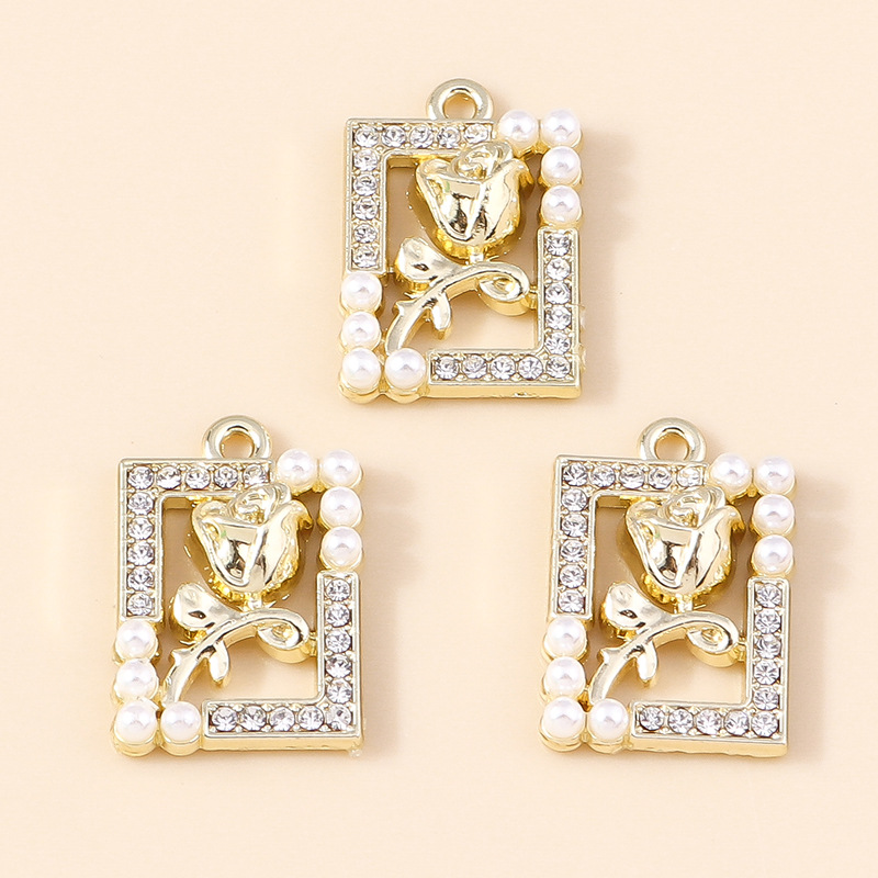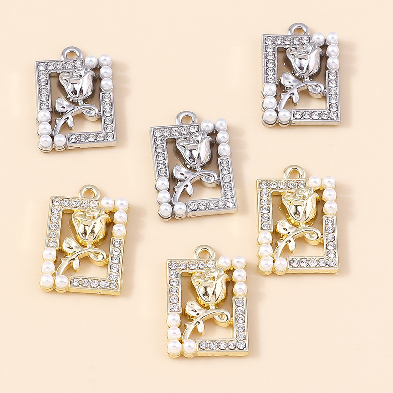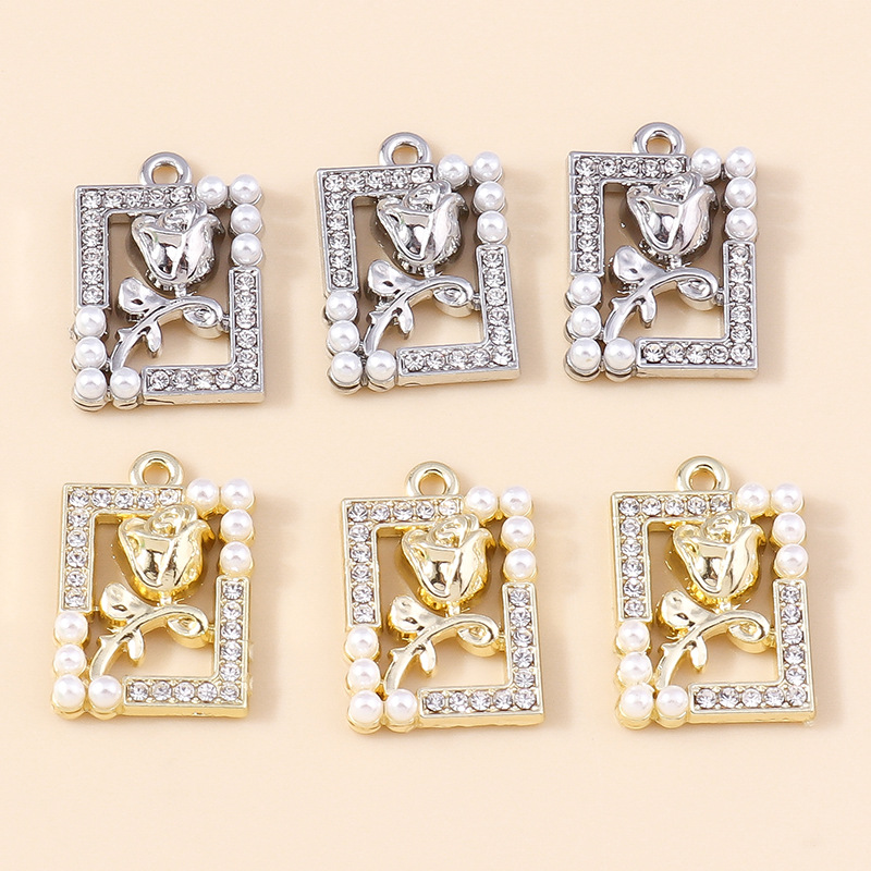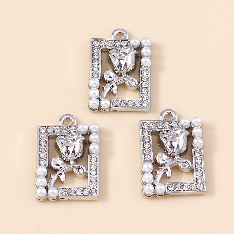 Zink Legierung Strass Anhänger, Zinklegierung, mit Kunststoff Perlen, Tulpe, plattiert, DIY & mit Strass, keine, 4PCs/Tasche, verkauft von Tasche