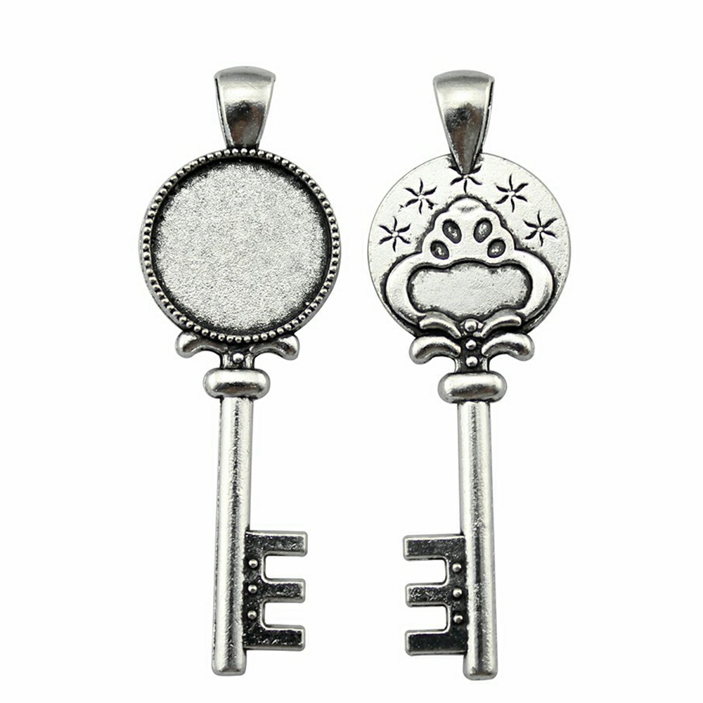 Zink-Legierung Cabochon Weissgold, Zinklegierung, Schlüssel, plattiert, DIY, Innendurchmesser:ca. 18mm, verkauft von PC