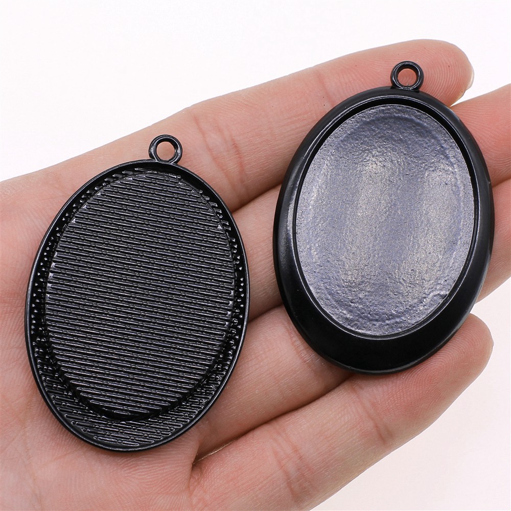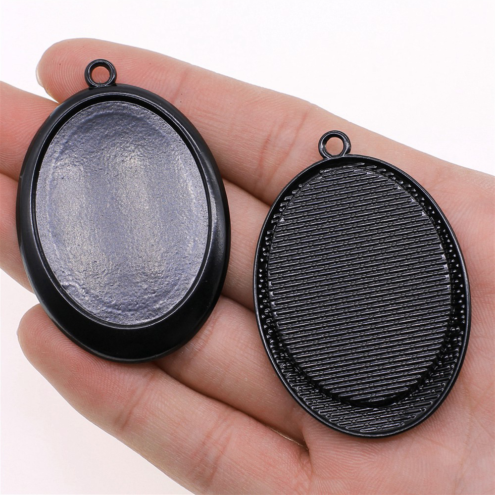 Zink-Legierung Cabochon Weissgold, Zinklegierung, plattiert, DIY, schwarz, Innendurchmesser:ca. 30x40mm, verkauft von PC