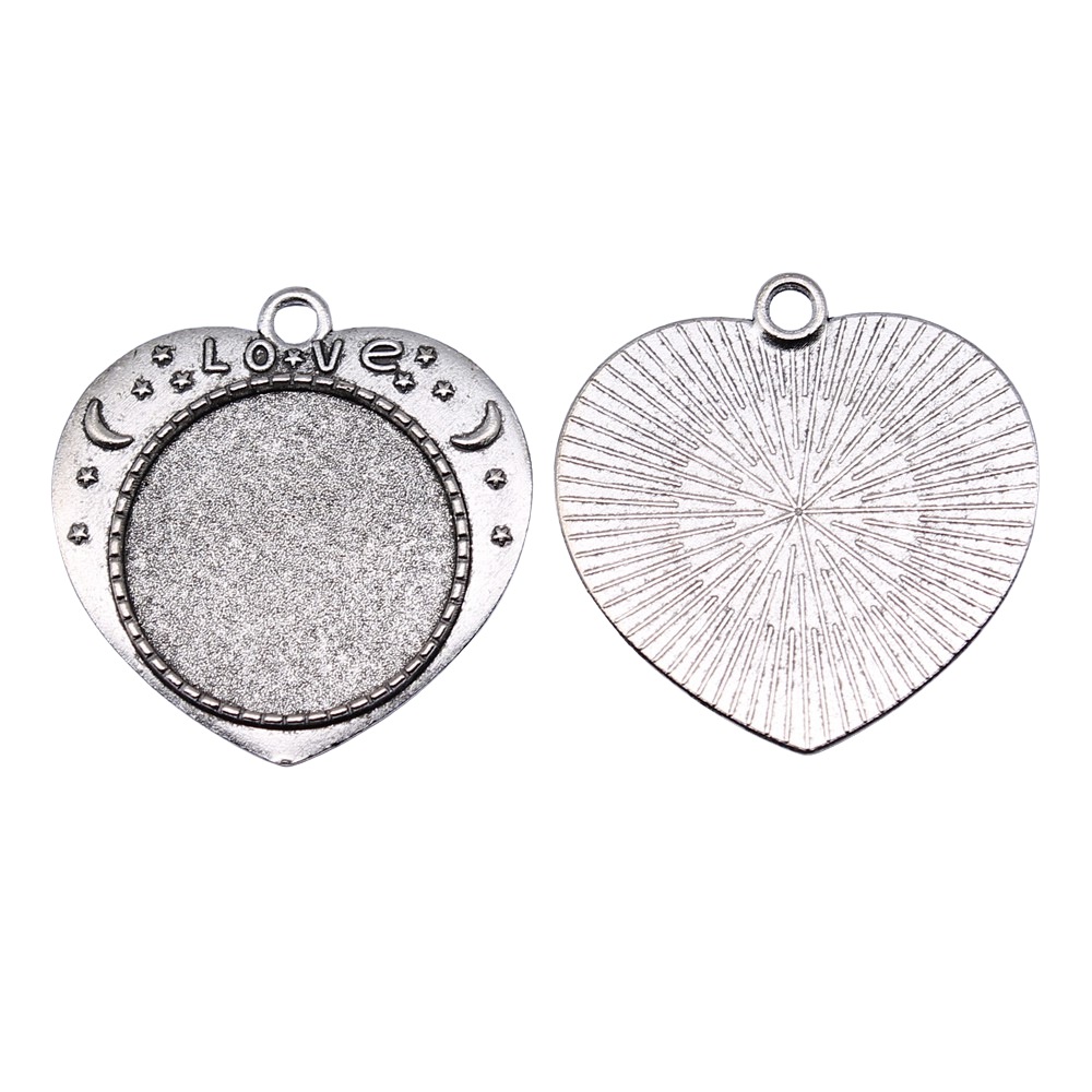 Zink-Legierung Cabochon Weissgold, Zinklegierung, Herz, plattiert, DIY, keine, Innendurchmesser:ca. 25mm, verkauft von PC