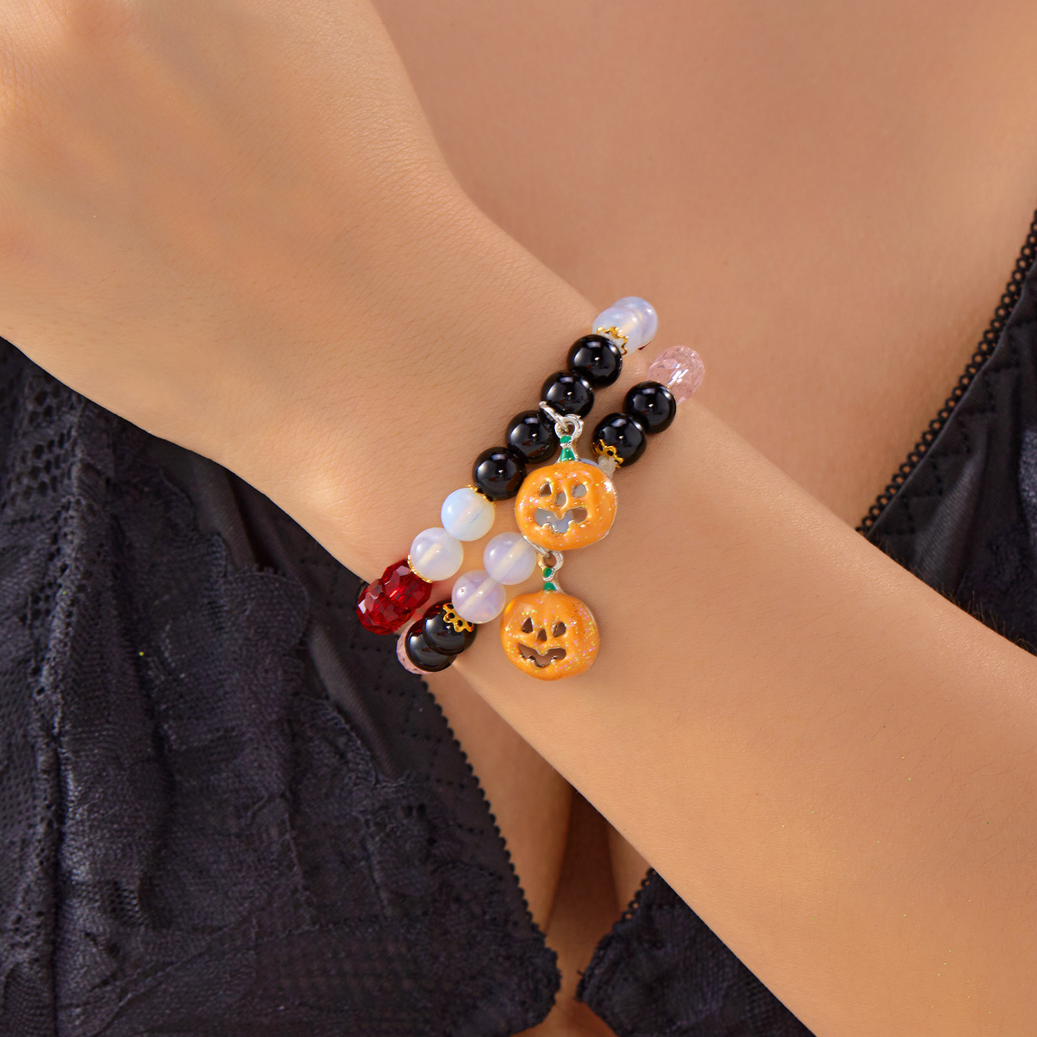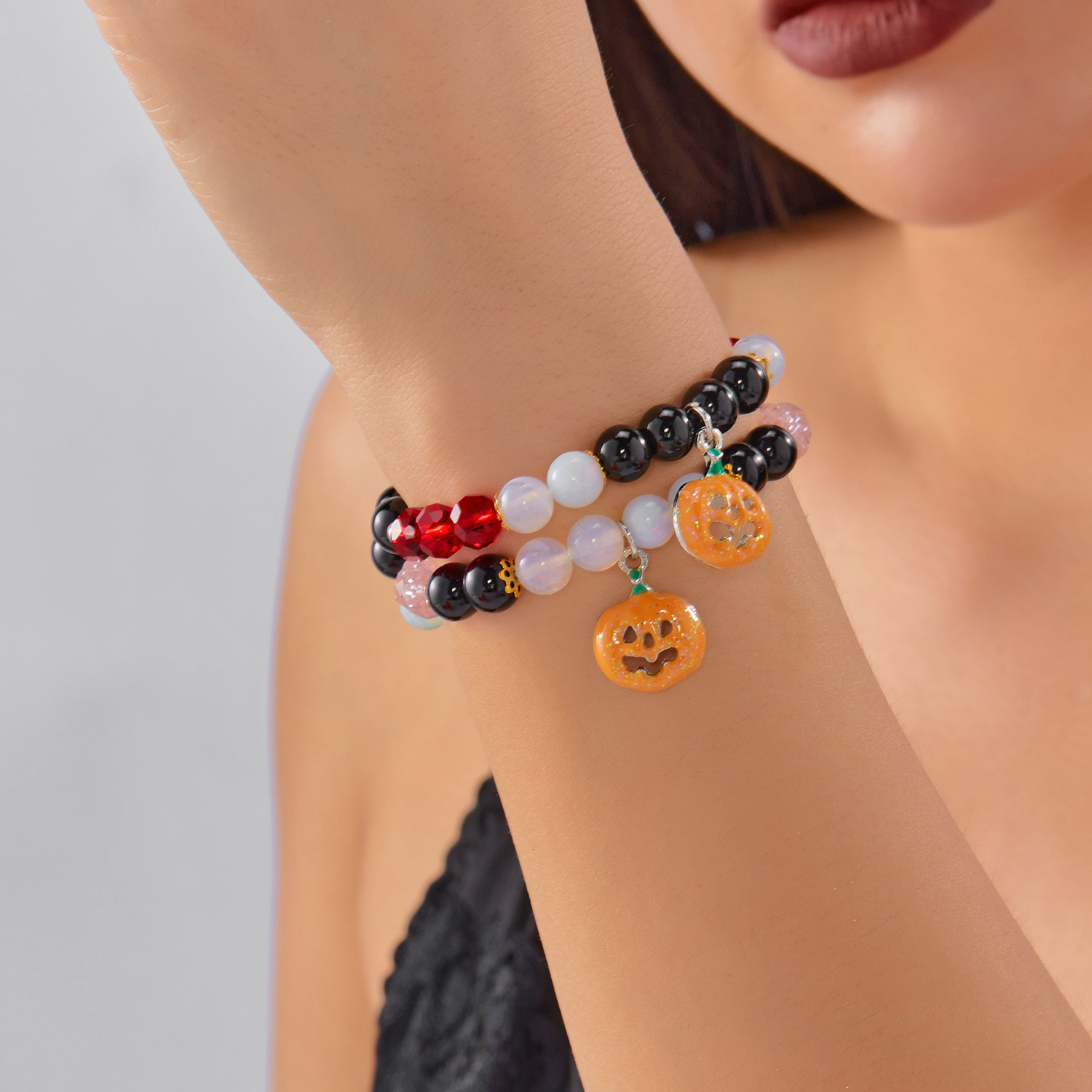 Zinklegierung Armband, mit Glasperlen, goldfarben plattiert, Design für Halloween & Emaille, keine, 2PCs/setzen, verkauft von setzen