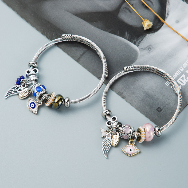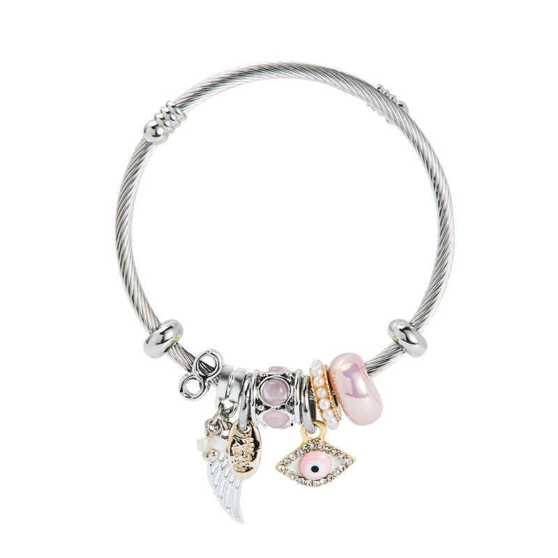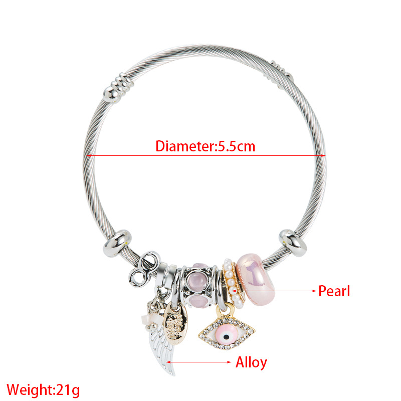 Zinklegierung Ball End Stulpe-Armband, mit Kunststoff Perlen & 304 Edelstahl, silberfarben plattiert, Modeschmuck & Emaille & mit Strass, keine, frei von Nickel, Blei & Kadmium, verkauft von PC