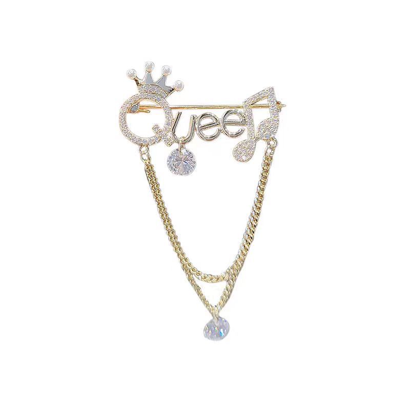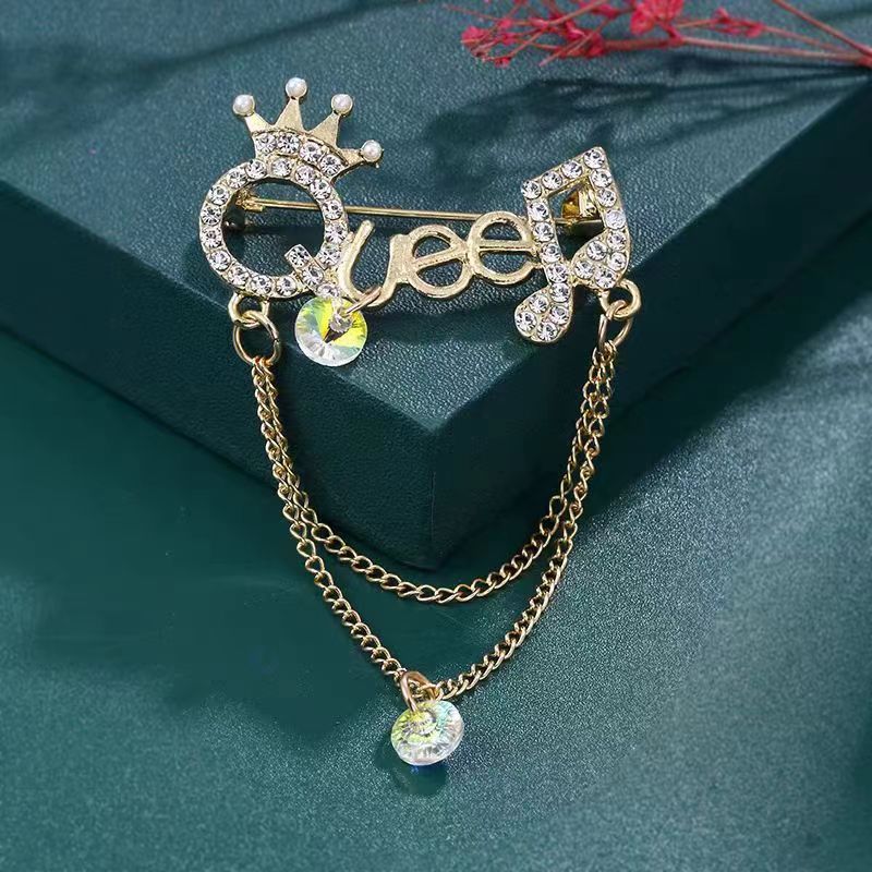 Zinklegierung Brosche, Alphabet-Buchstabe, plattiert, für Frau & mit Strass, keine, 67x34mm, verkauft von PC