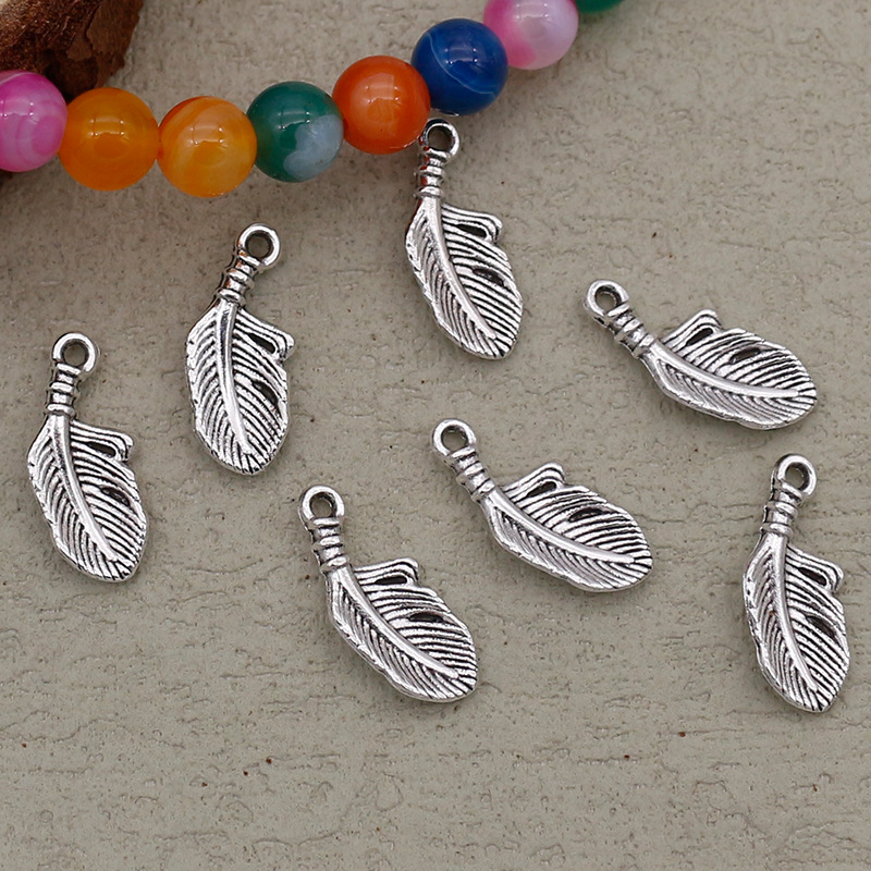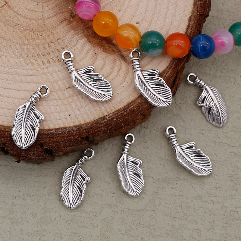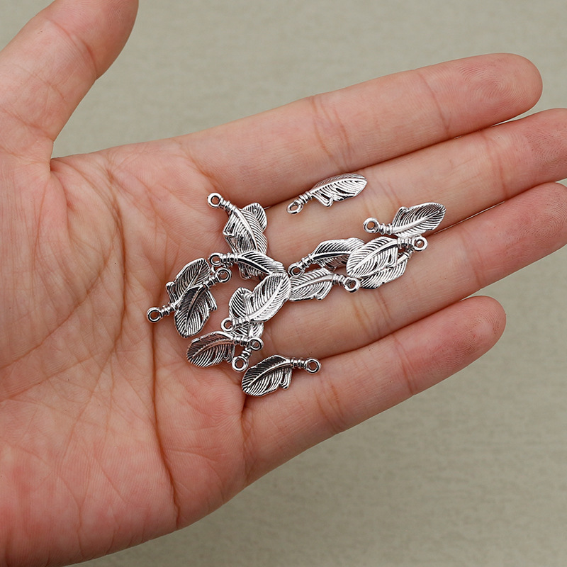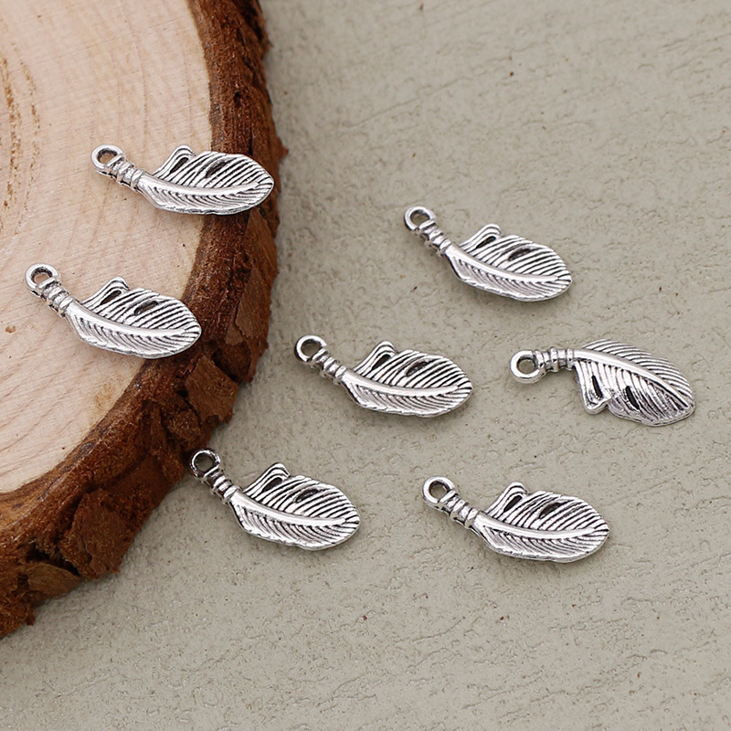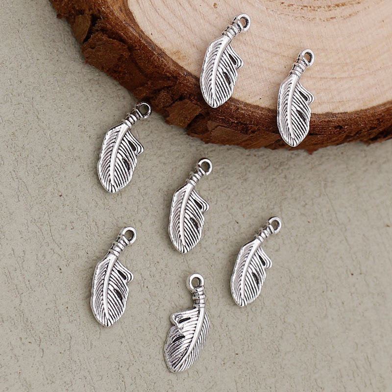 Zinklegierung Feder Anhänger, Federn, silberfarben plattiert, DIY, Silberfarbe, frei von Nickel, Blei & Kadmium, 16.50x7mm, Bohrung:ca. 1mm, verkauft von PC