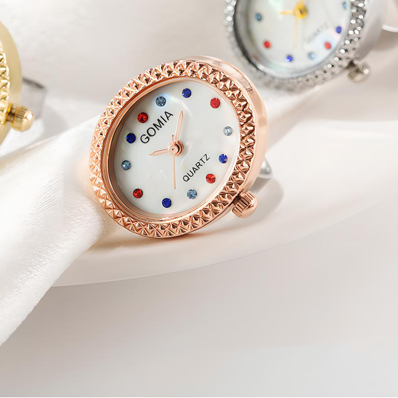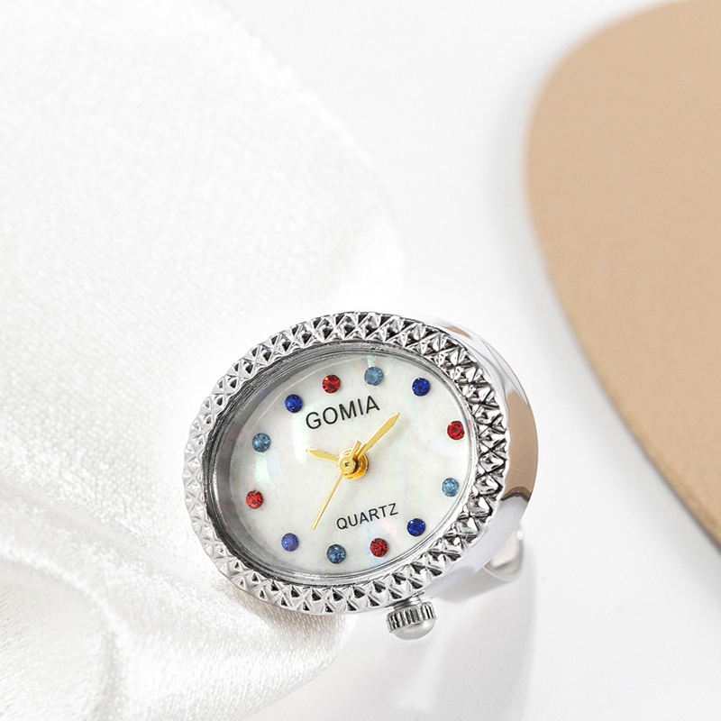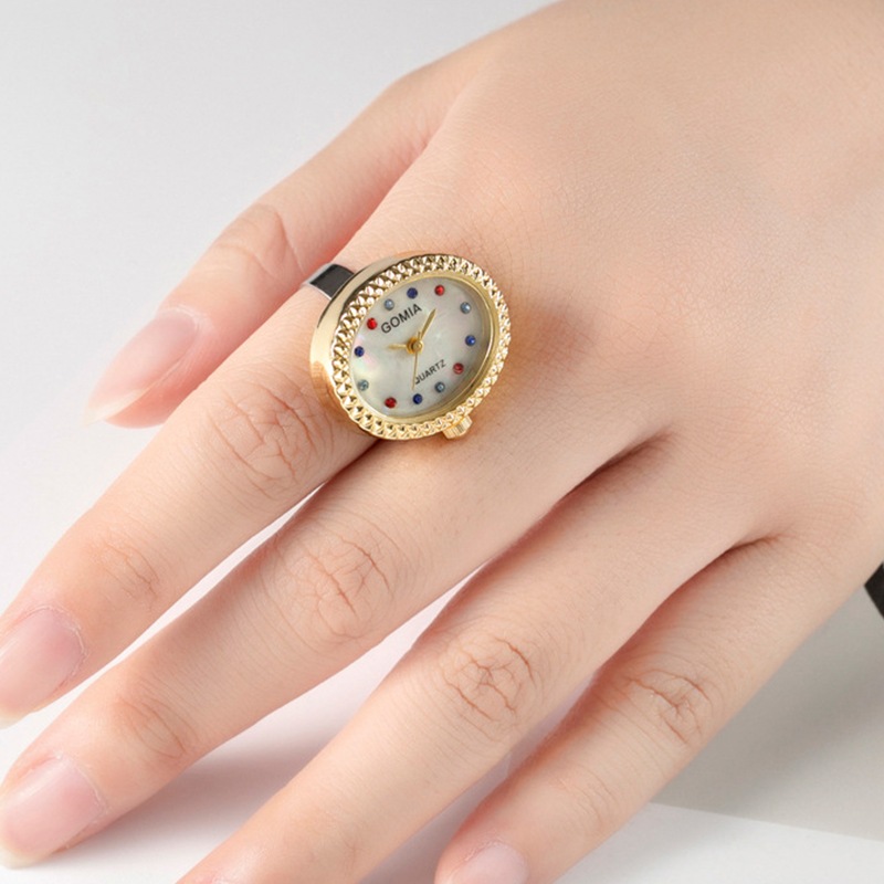 Zinklegierung Fingerring Uhr, mit Glas, oval, plattiert, Lebenswasserbeständig & einstellbar & für Frau & mit Strass, keine, 22mm, Größe:6-8, verkauft von PC
