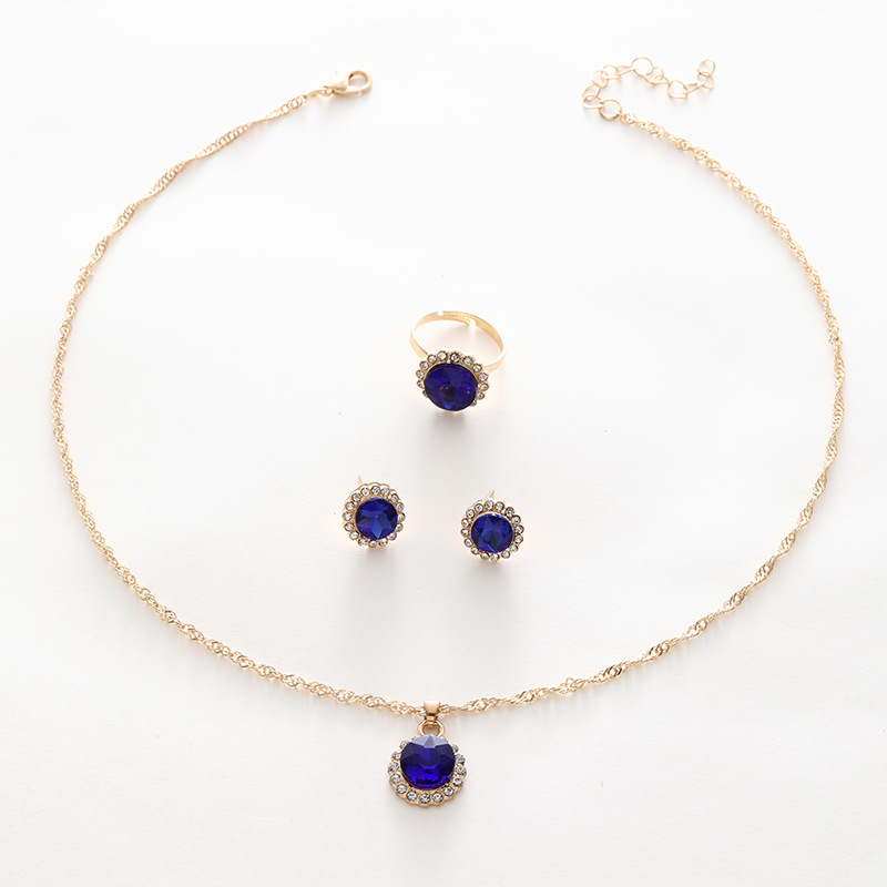 Zinklegierung Mode Schmuckset, Stud Ohrring & Fingerring & Halskette, rund, goldfarben plattiert, drei Stücke & für Frau & mit kubischem Zirkonia & mit Strass, keine, necklace length 18-20inch, bracelet length 6-8inch, Größe:6-8, verkauft von setzen