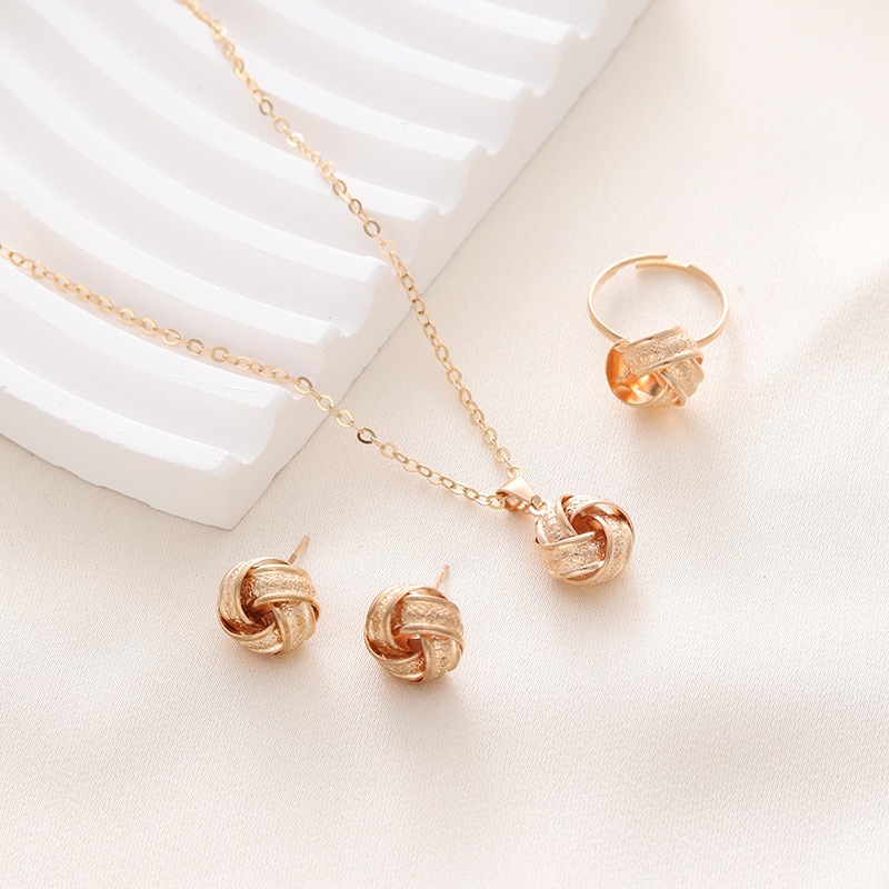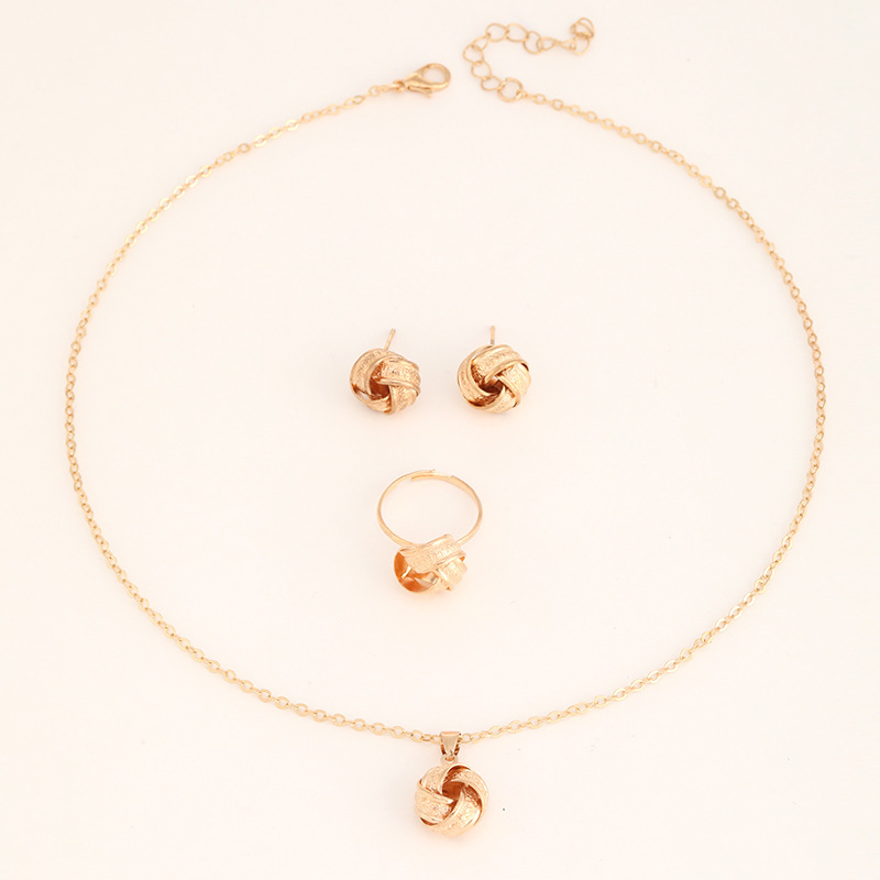 Zinklegierung Mode Schmuckset, Stud Ohrring & Fingerring & Halskette, goldfarben plattiert, drei Stücke & für Frau, necklace length 18-20inch, bracelet length 6-8inch, Größe:6-8, verkauft von setzen