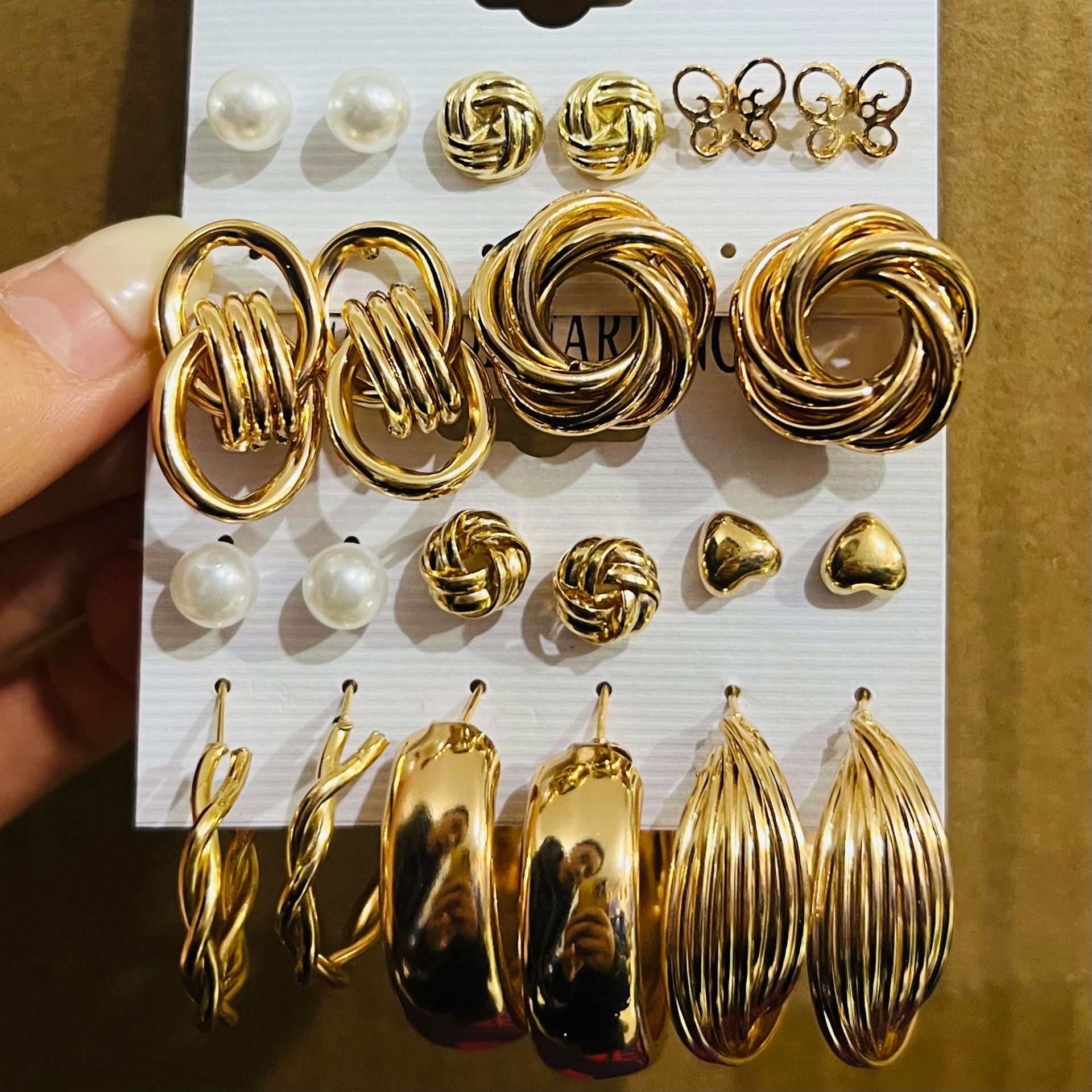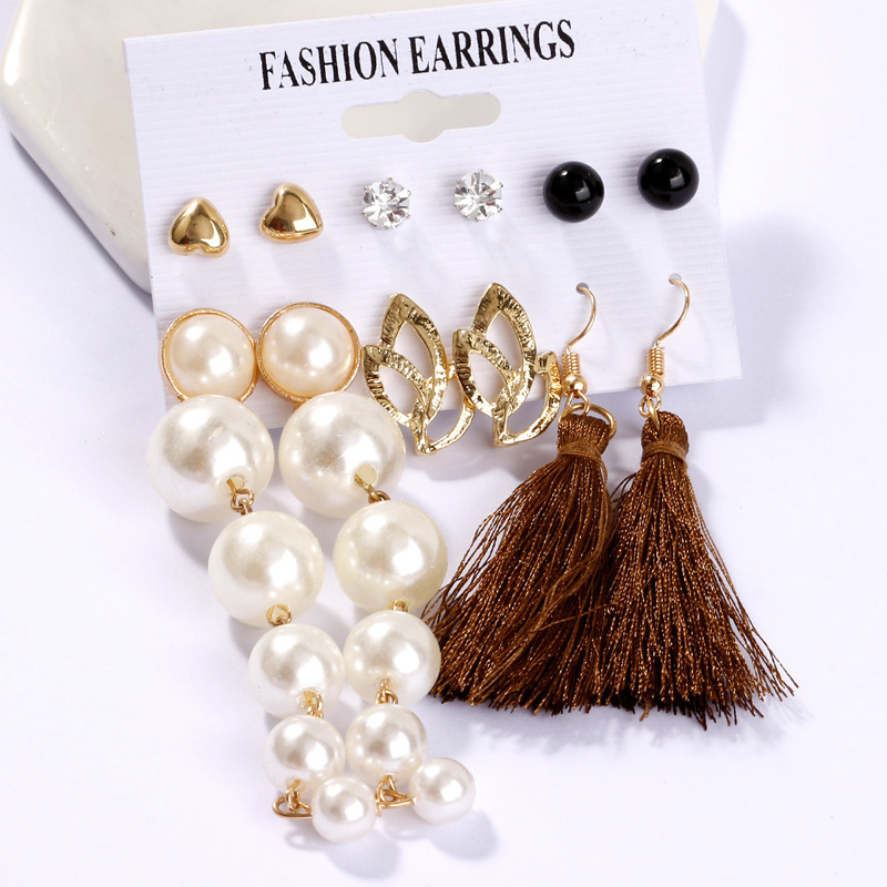 Zinklegierung Ohrring-Set, mit Kunststoff Perlen & Acryl, goldfarben plattiert, verschiedene Stile für Wahl & für Frau & mit Strass, earring length 6-60mm, verkauft von setzen