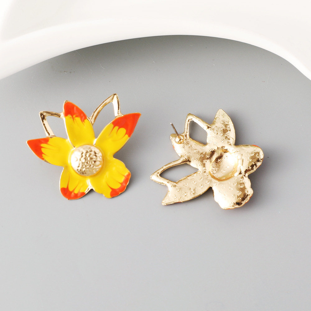 Zinklegierung Ohrstecker, mit Terylen Schnur, Blume, goldfarben plattiert, verschiedene Stile für Wahl & für Frau & Emaille, verkauft von Paar