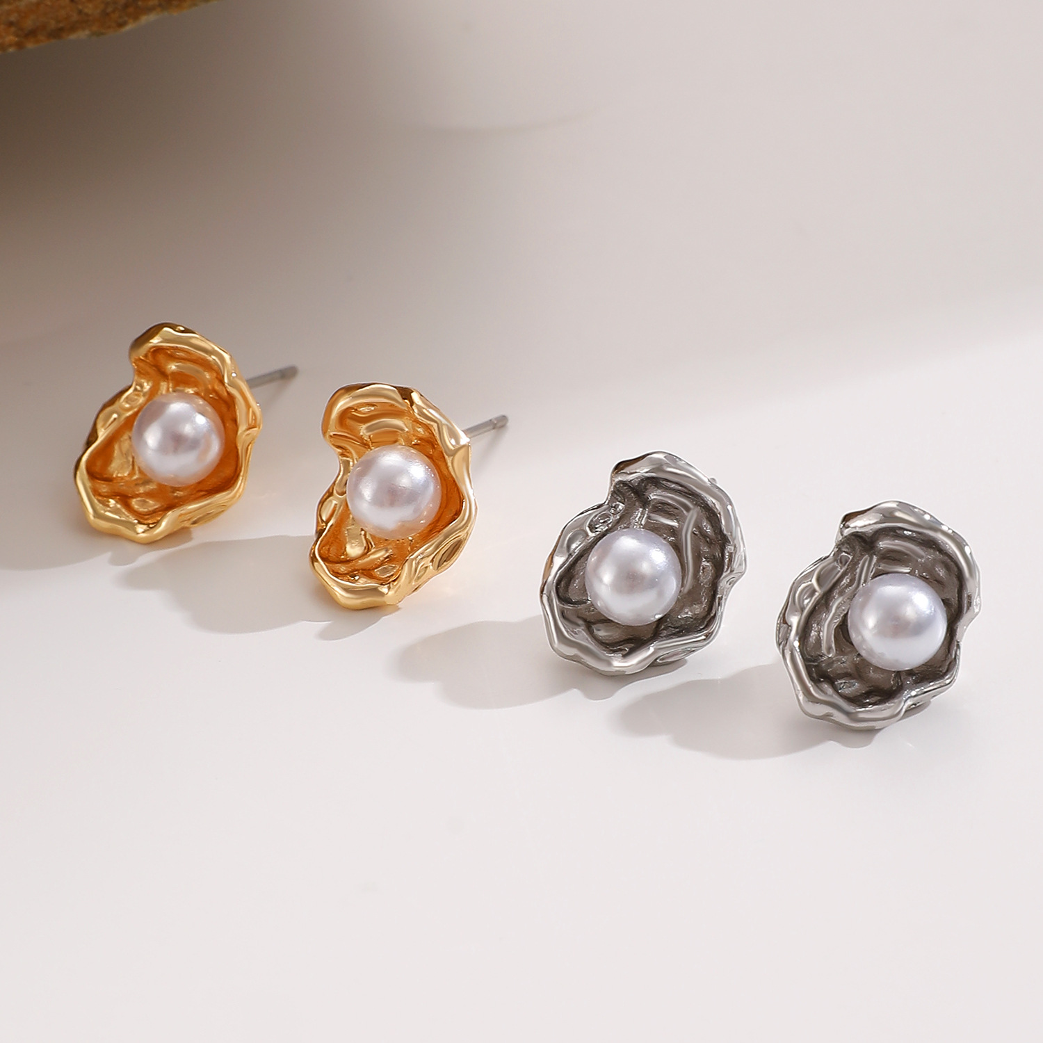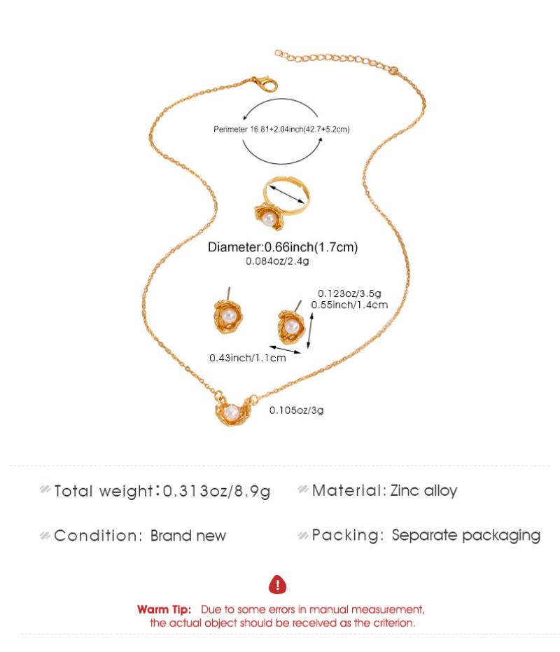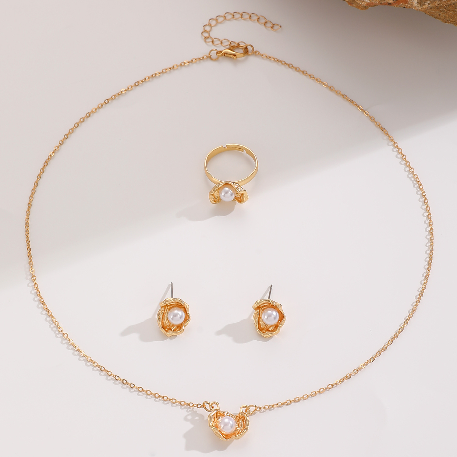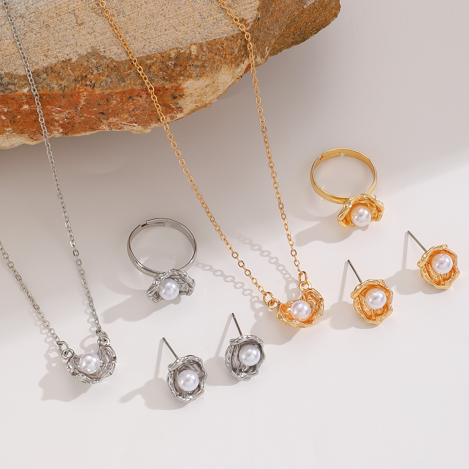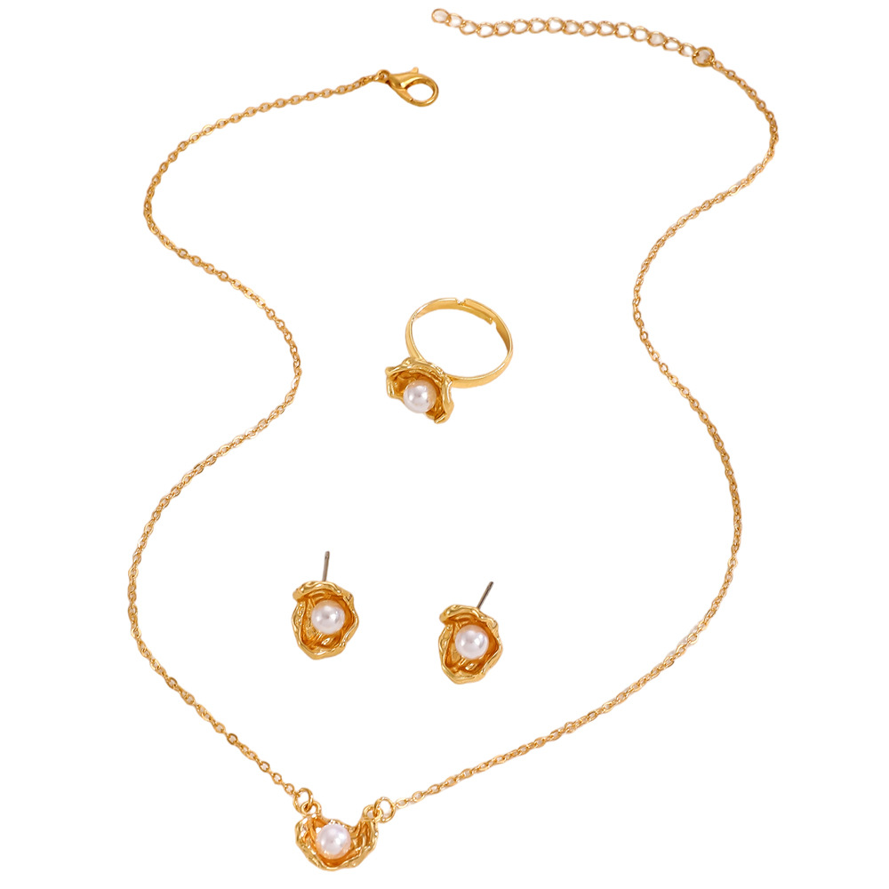 Zinklegierung Schmucksets, Stud Ohrring & Fingerring & Halskette, mit ABS-Kunststoff-Perlen, goldfarben plattiert, Modeschmuck, keine, verkauft von PC