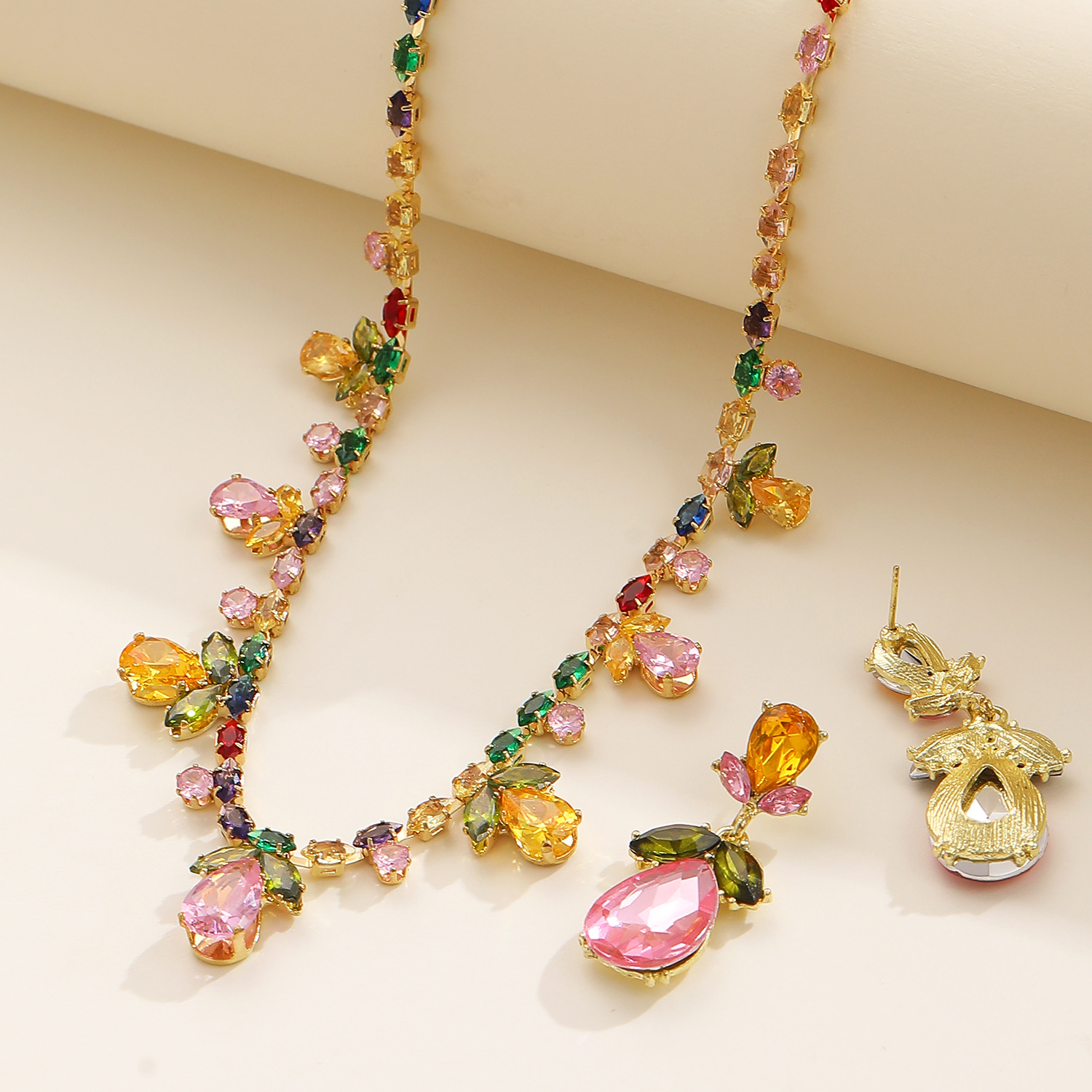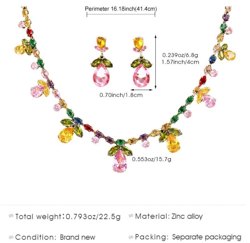 Zinklegierung Schmucksets, Stud Ohrring & Halskette, goldfarben plattiert, Modeschmuck & Micro pave Zirkonia, keine, verkauft von Tasche