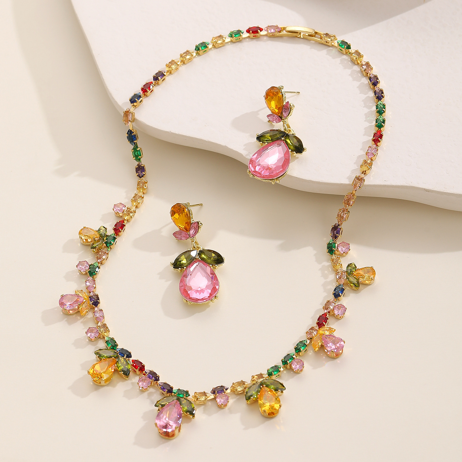 Zinklegierung Schmucksets, Ohrring & Halskette, mit Kristall, plattiert, Modeschmuck, keine, frei von Nickel, Blei & Kadmium, verkauft von setzen