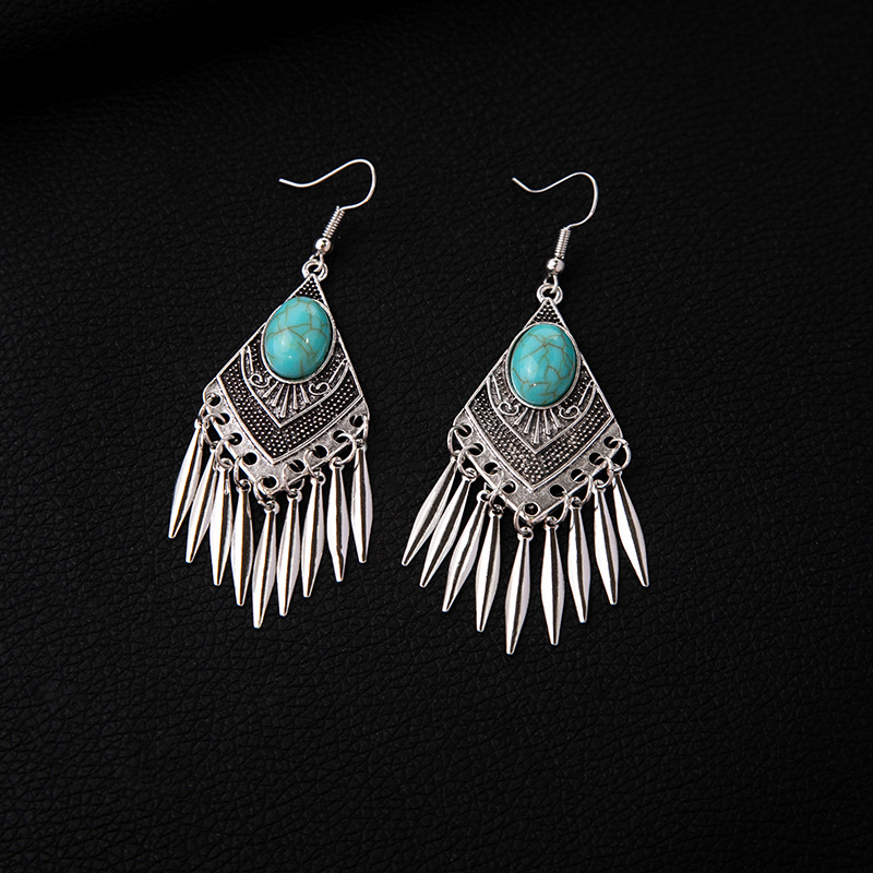 Zinklegierung Tropfen Ohrring, mit Türkis, plattiert, Folk-Stil & verschiedene Stile für Wahl & für Frau, earring length 60-80mm, verkauft von Paar
