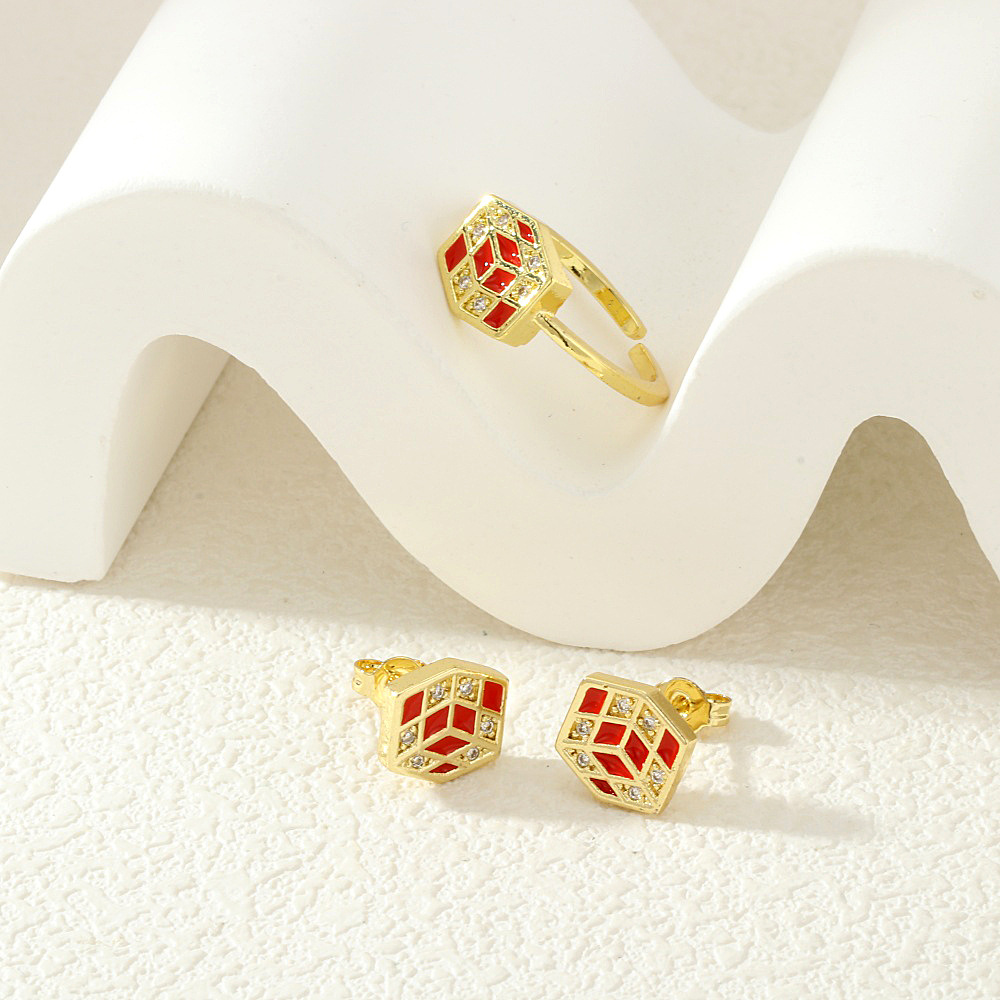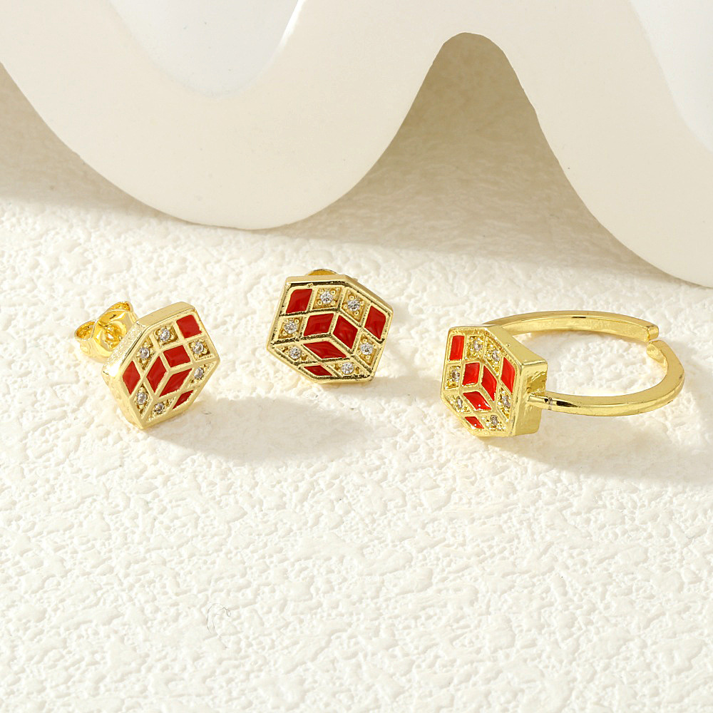 Zirkonia Micro Pave Messing-Schmucksets, Stud Ohrring & Fingerring, Messing, goldfarben plattiert, Modeschmuck & verschiedene Stile für Wahl & Micro pave Zirkonia & für Frau & Emaille, keine, frei von Nickel, Blei & Kadmium, verkauft von PC