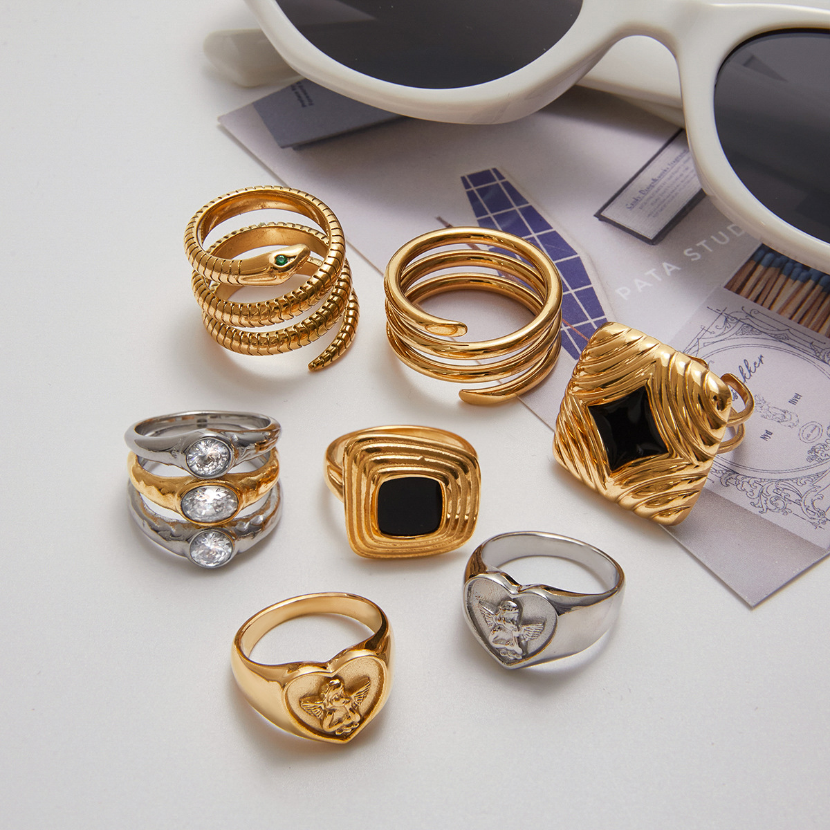 Zirkonia Edelstahl-Finger- Ring, Edelstahl, plattiert, verschiedene Stile für Wahl & für Frau & Emaille & mit kubischem Zirkonia, keine, verkauft von PC