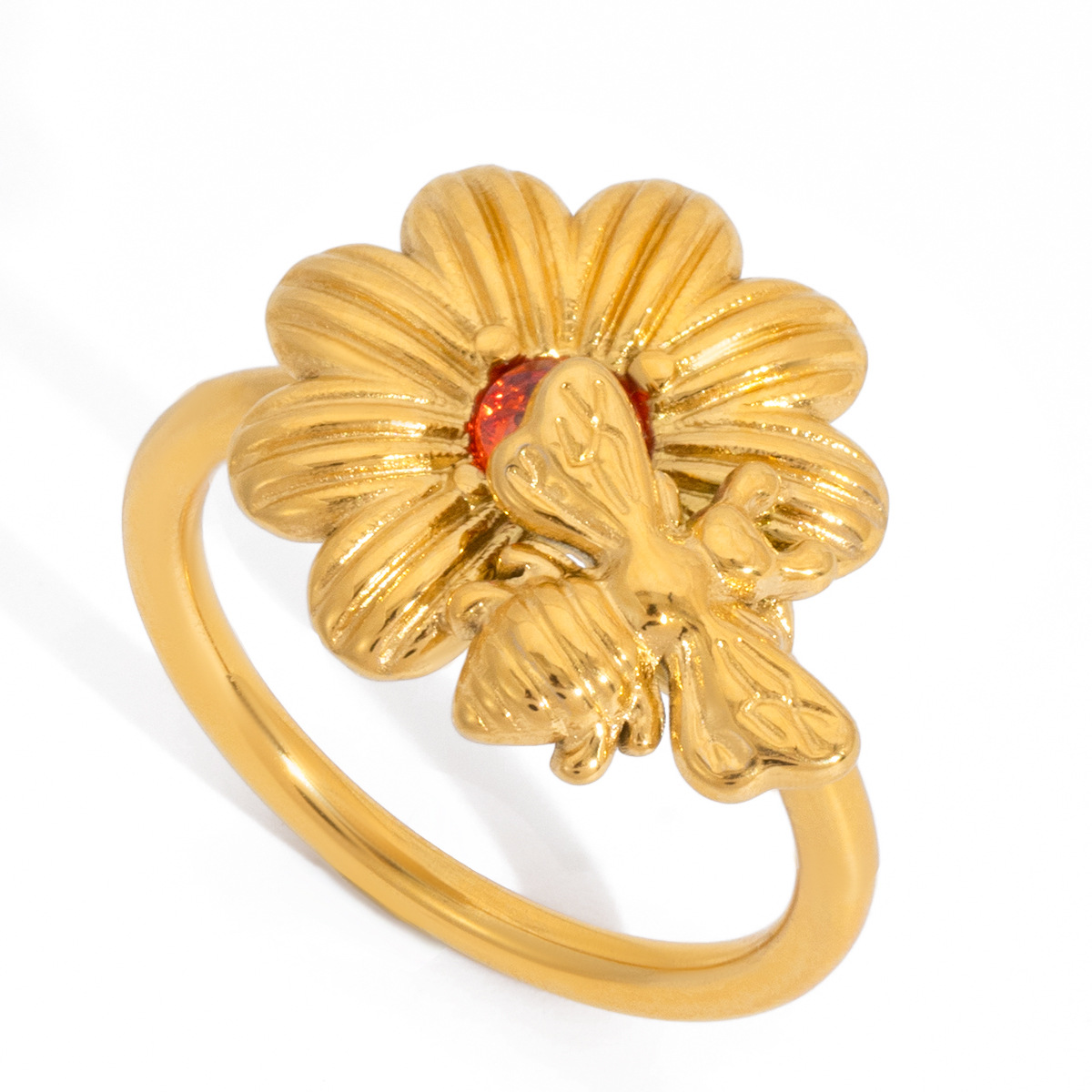 Zirkonia Edelstahl-Finger- Ring, Edelstahl, goldfarben plattiert, für Frau & mit kubischem Zirkonia, 15.60mm, Größe:7, verkauft von PC