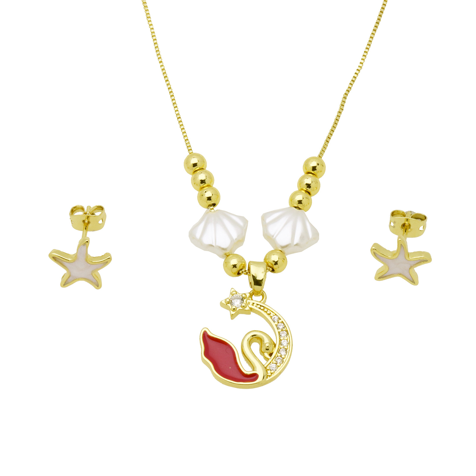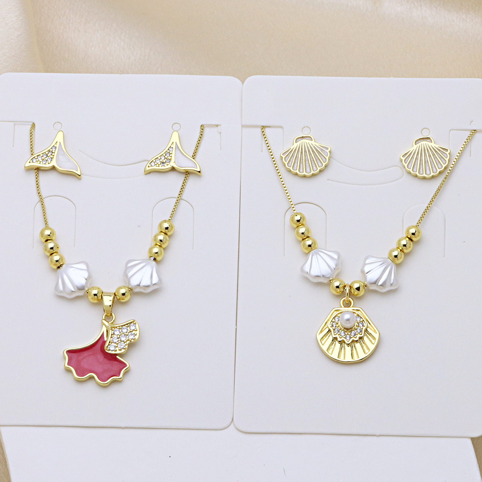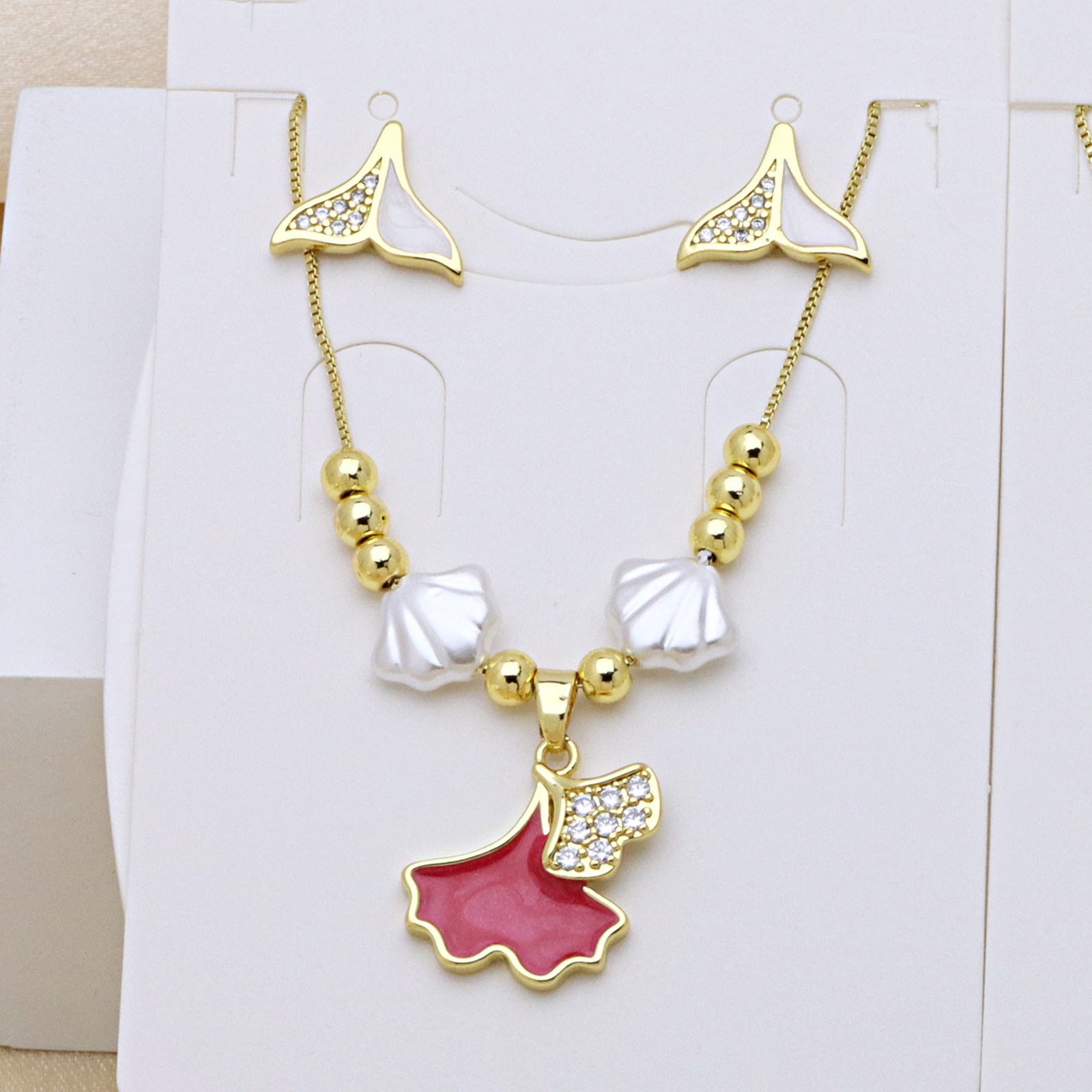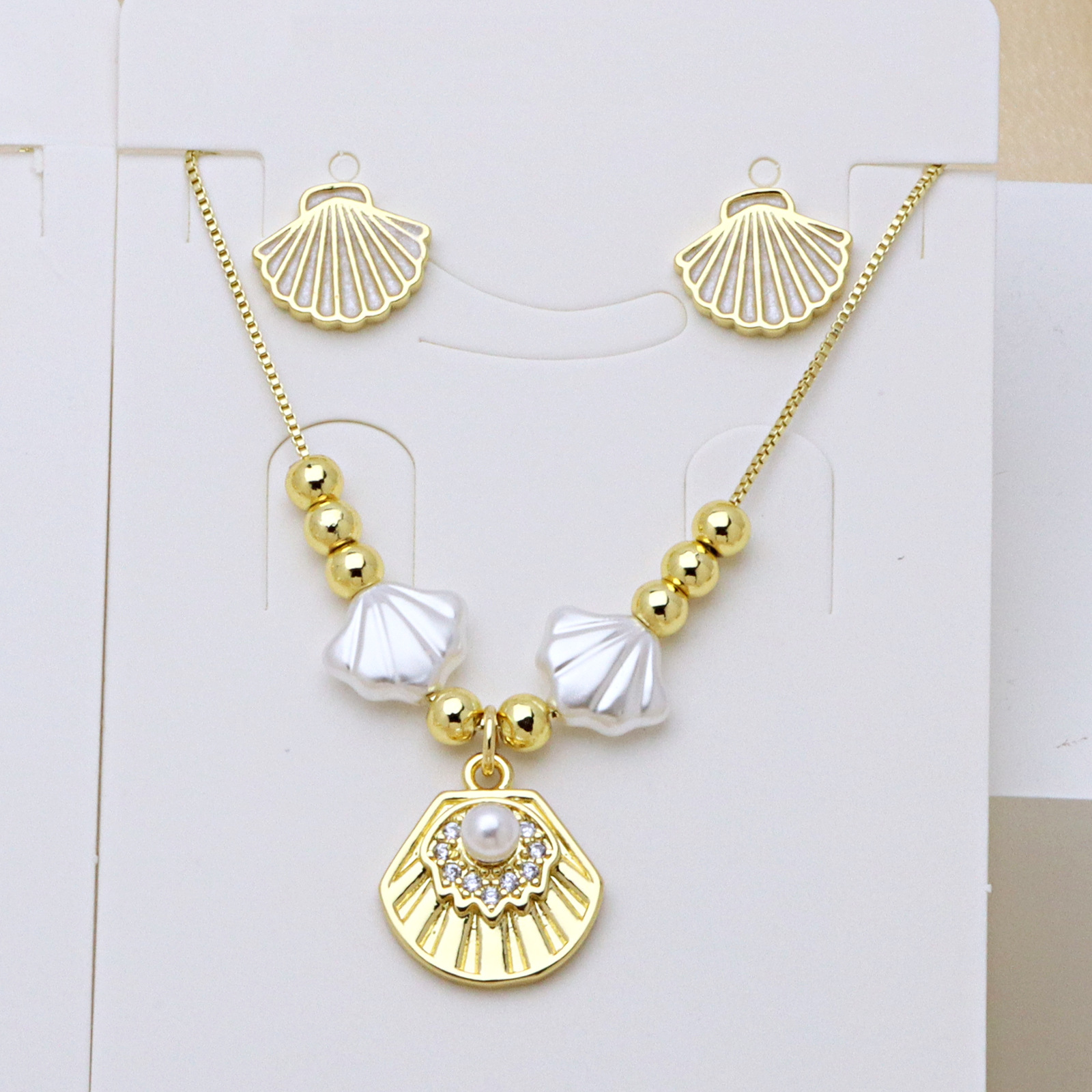Zirkonia Micro Pave Messing-Schmucksets, Messing, mit Kunststoff Perlen, goldfarben plattiert, verschiedene Stile für Wahl & Micro pave Zirkonia & für Frau & Emaille, keine, Länge ca. 50 cm, verkauft von setzen