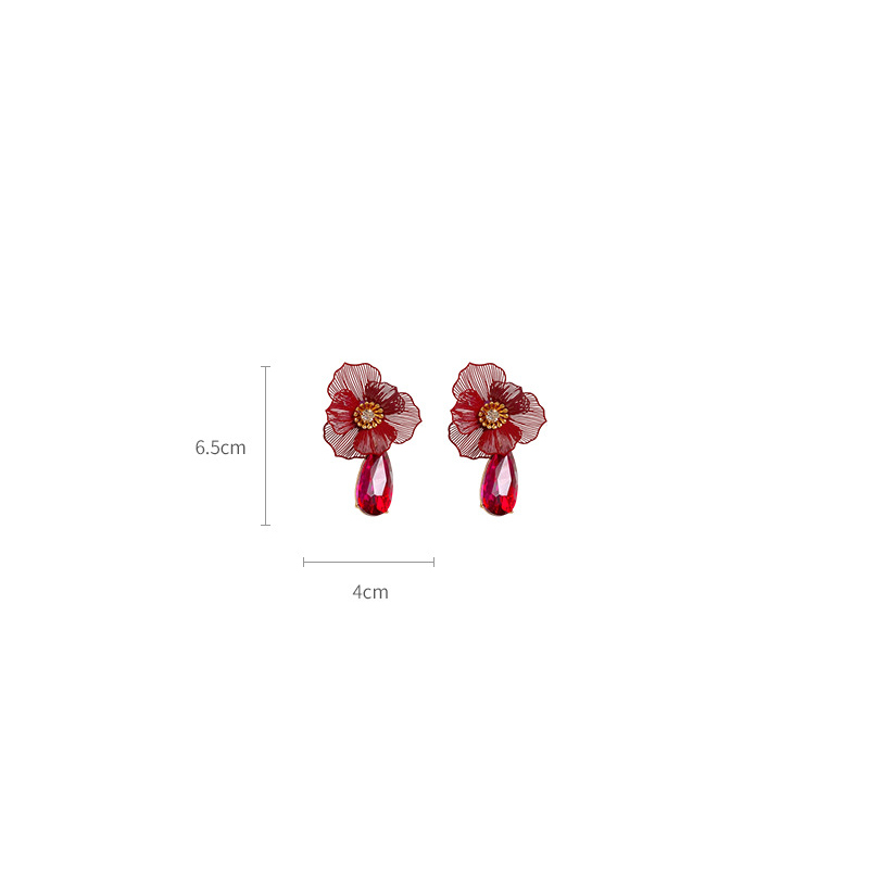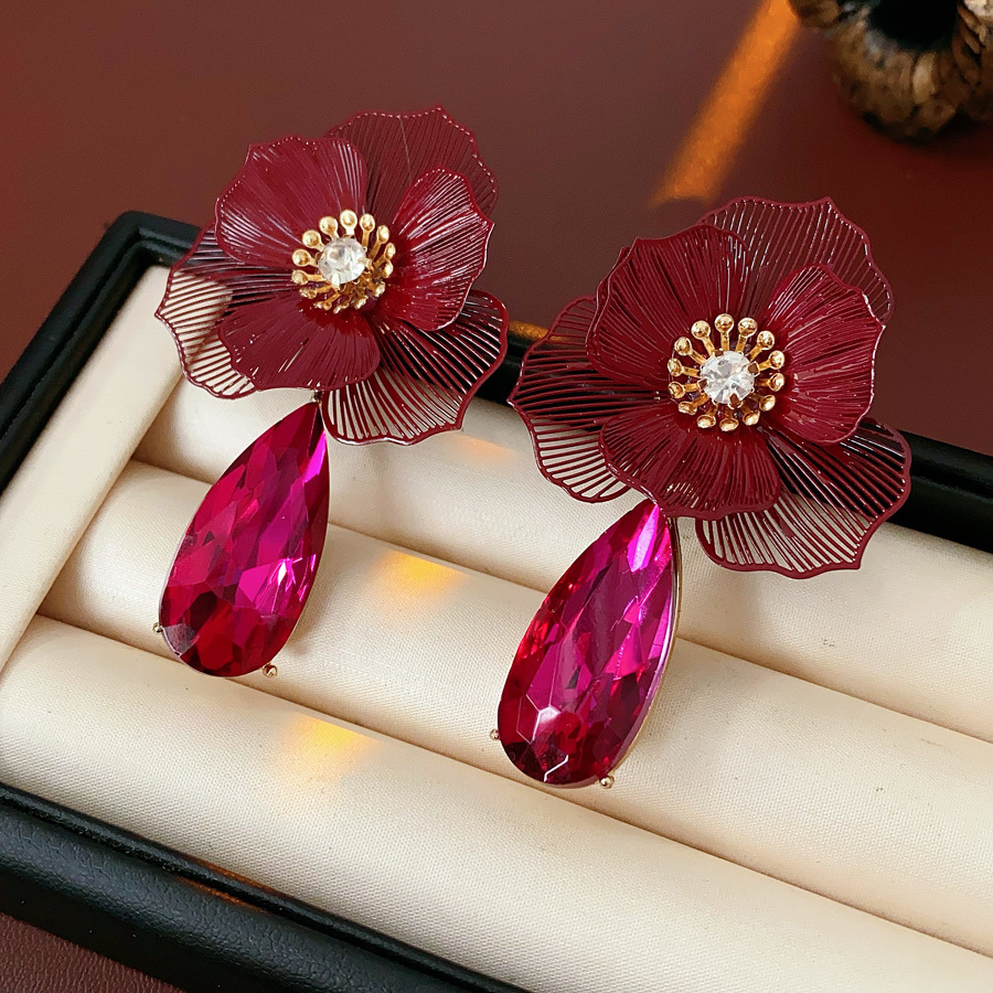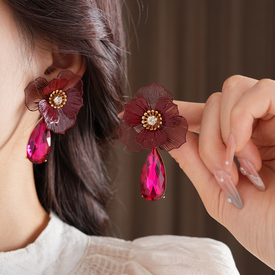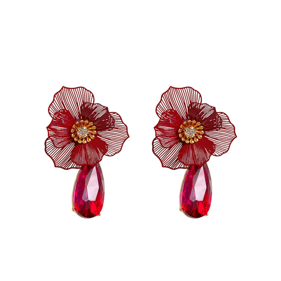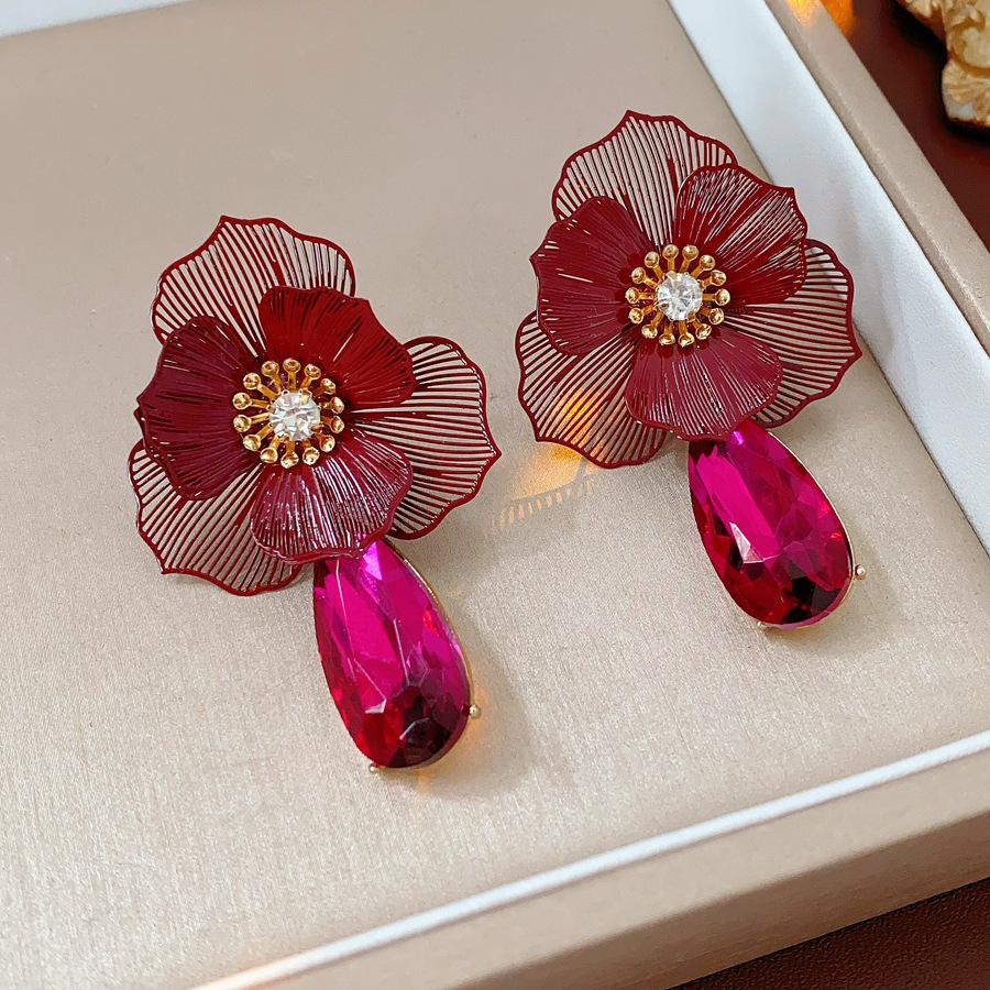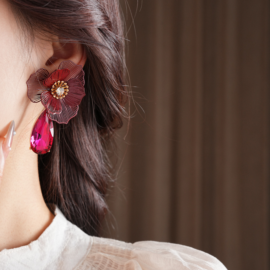 Zinklegierung Tropfen Ohrring, Blume, plattiert, für Frau & mit Strass & hohl, 40x65mm, verkauft von Paar