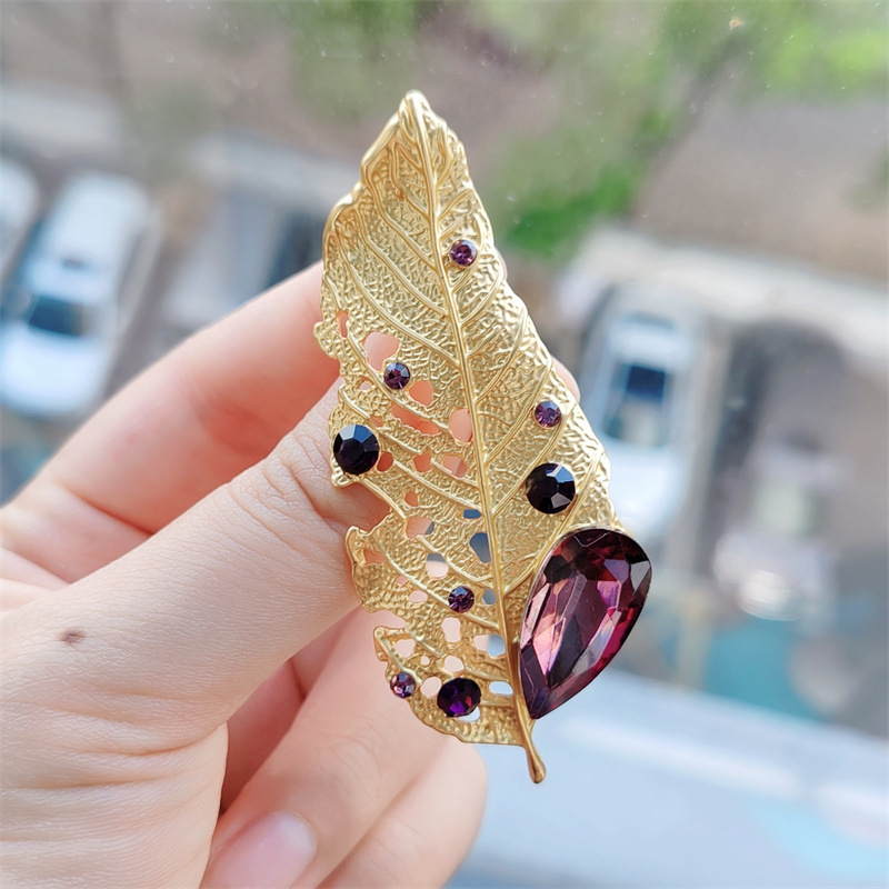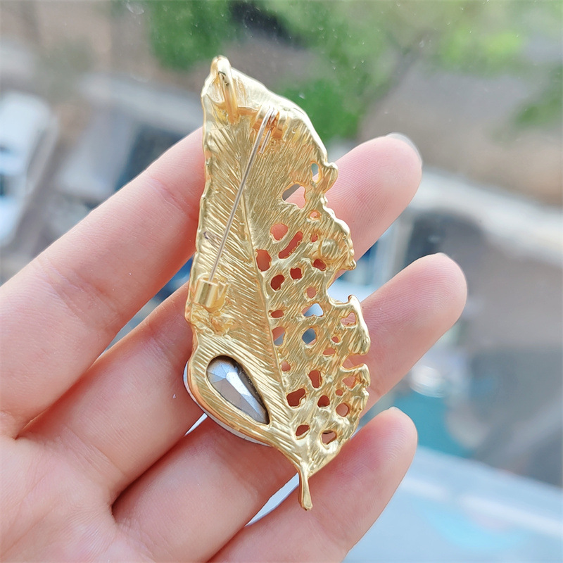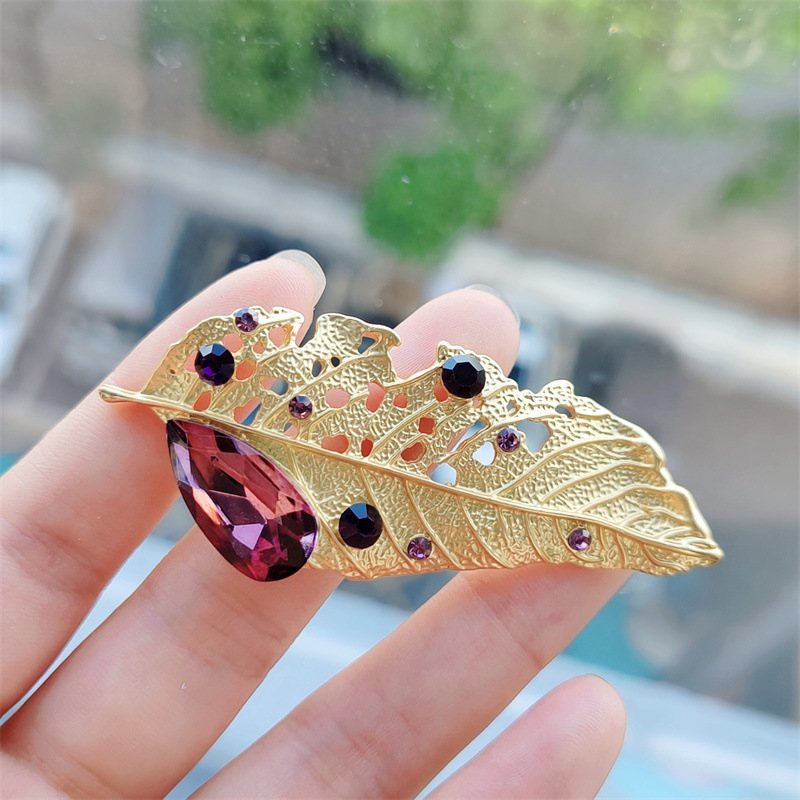 Zinklegierung Brosche, mit Strass, Blatt, plattiert, Modeschmuck & für Frau & hohl, antik goldfarben, 70x30x20mm, verkauft von PC