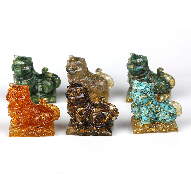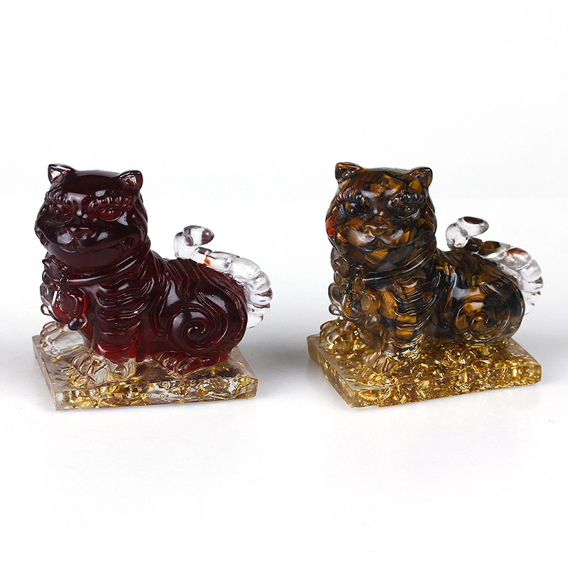 Edelstein Dekoration, mit Harz, Tiger, Epoxidharzklebstoff, verschiedenen Materialien für die Wahl, 65x70x40mm, verkauft von PC