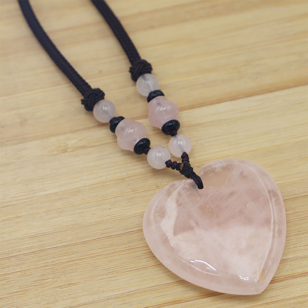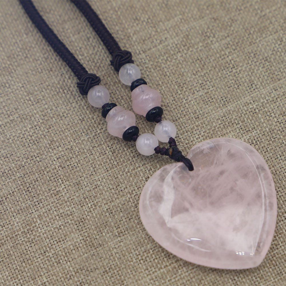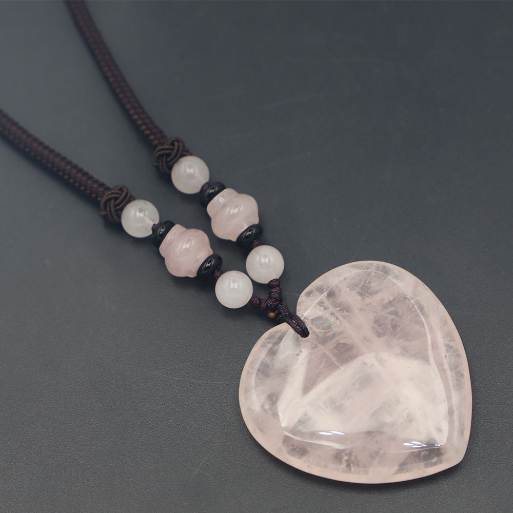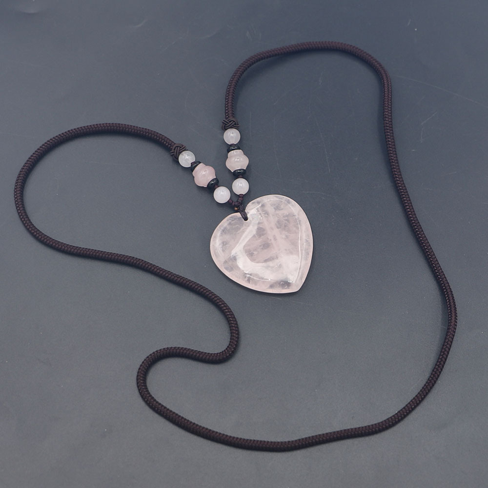 Rosenquarz Halskette, Herz, Modeschmuck & Seil-Kette, gemischte Farben, 40x40x9mm, Länge 680 Millimeter, verkauft von PC