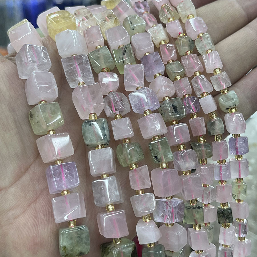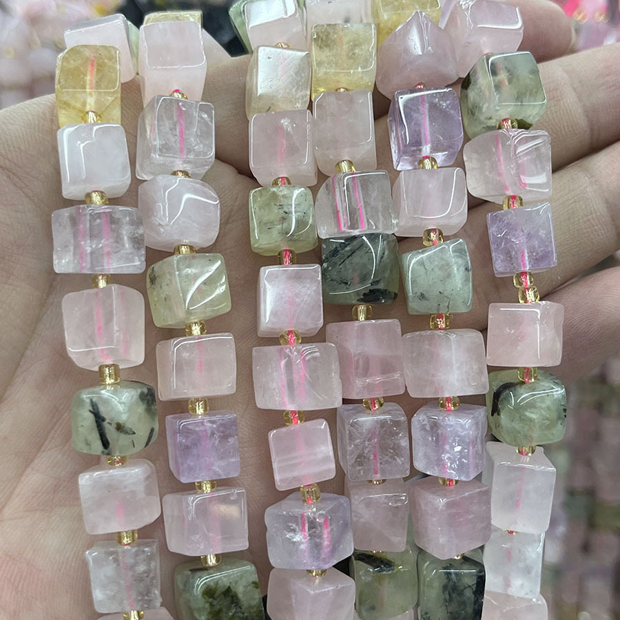 Rosenquarz Perle, Quadrat, DIY, gemischte Farben, verkauft per ca. 38 cm Strang