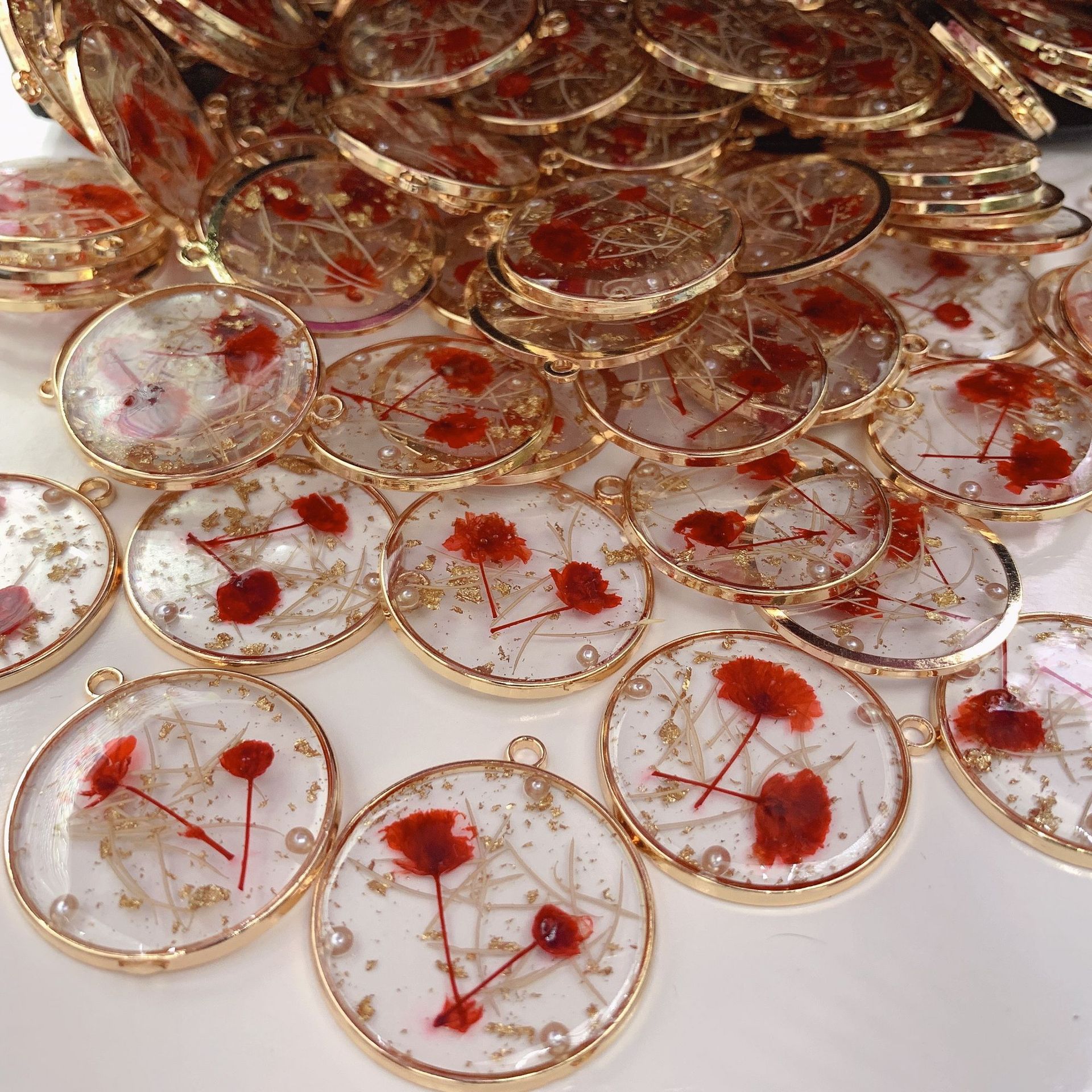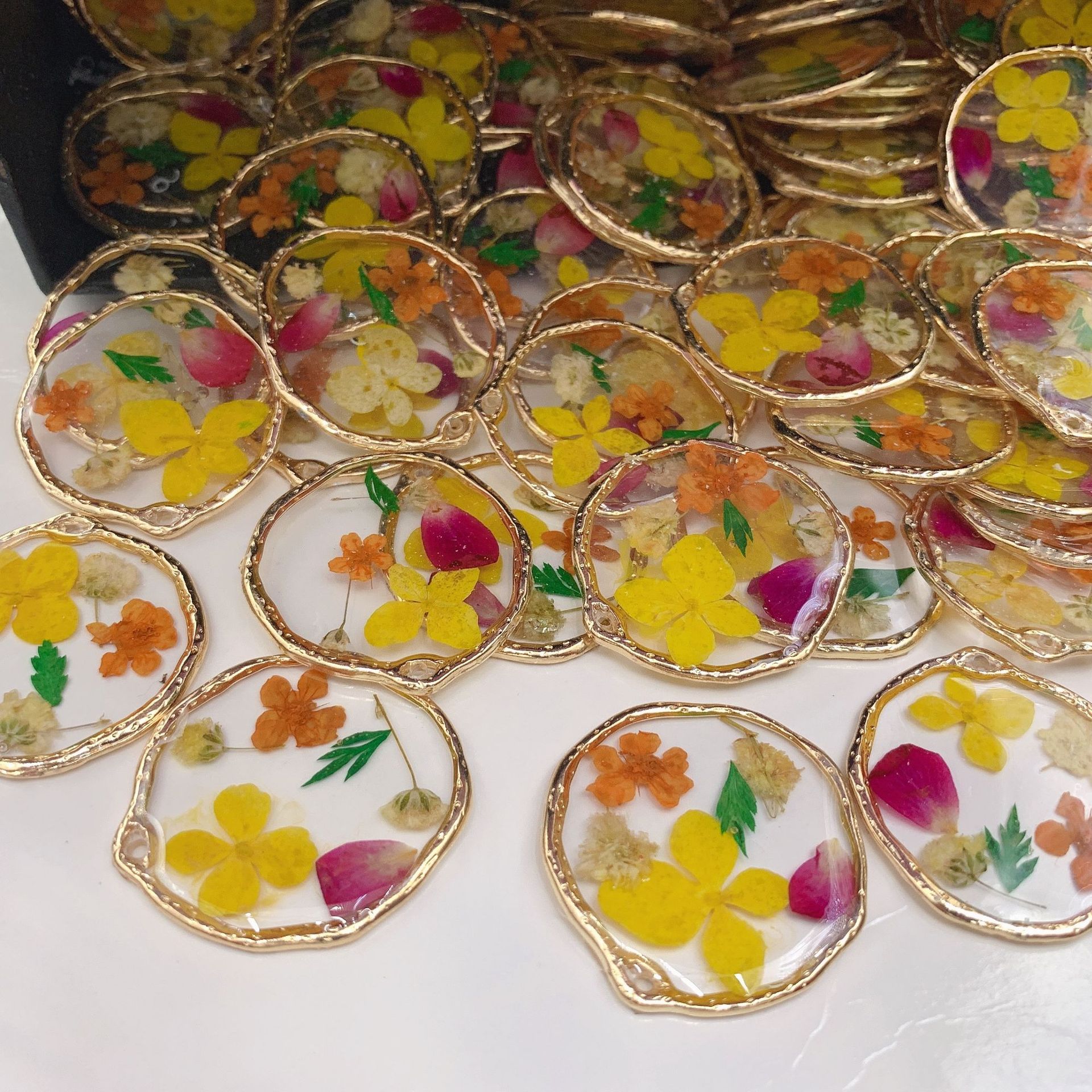 Harz Anhänger, mit Getrocknete Blumen & Zinklegierung, Epoxidharzklebstoff, DIY & verschiedene Stile für Wahl, pendant length 30-35mm, verkauft von PC