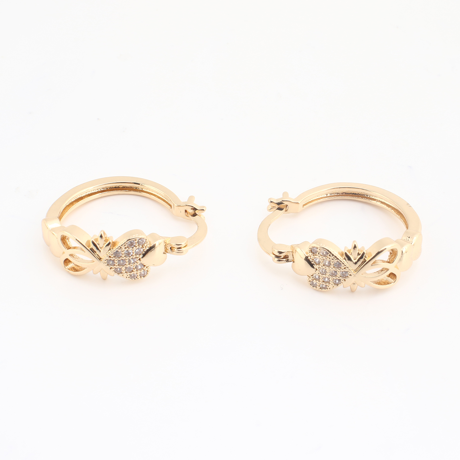 Ορείχαλκος Huggie Hoop Σκουλαρίκια, χρώμα επίχρυσο, για τη γυναίκα & με στρας, 20PCs/τσάντα, Sold Με τσάντα