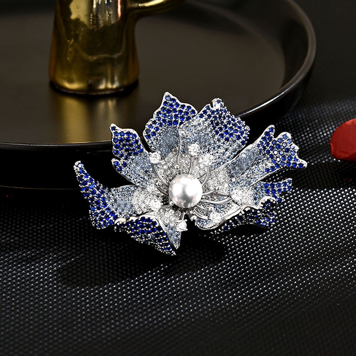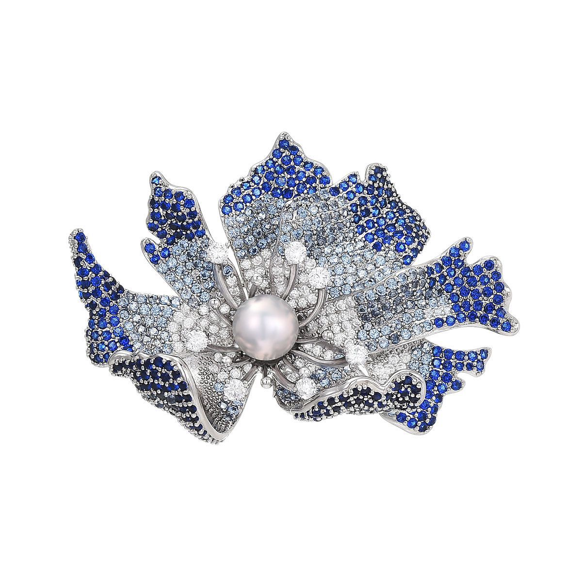 Κυβικά Ζιρκονία Καρφίτσα, Ορείχαλκος, με Shell Pearl, επιχρυσωμένο, μικρο ανοίξει κυβικά ζιρκονία & για τη γυναίκα, ασήμι, 36x52mm, Sold Με PC