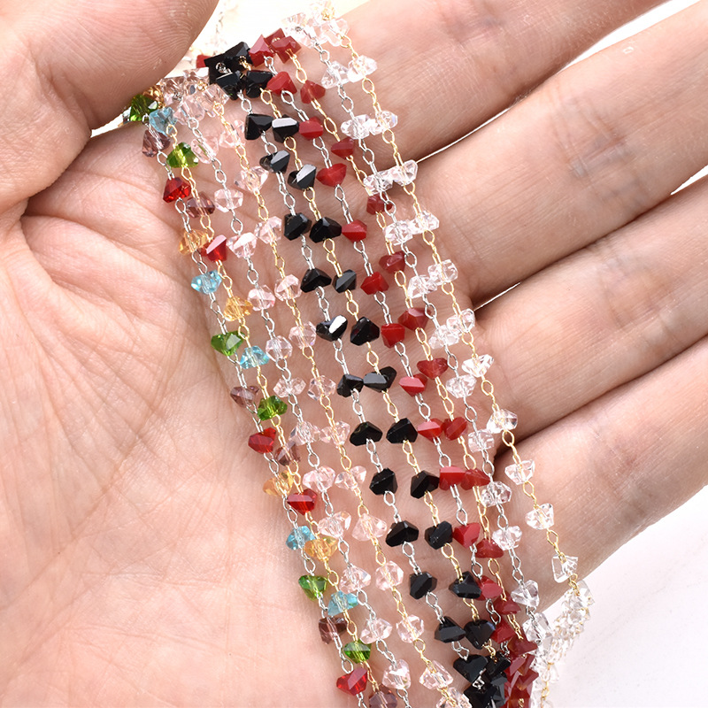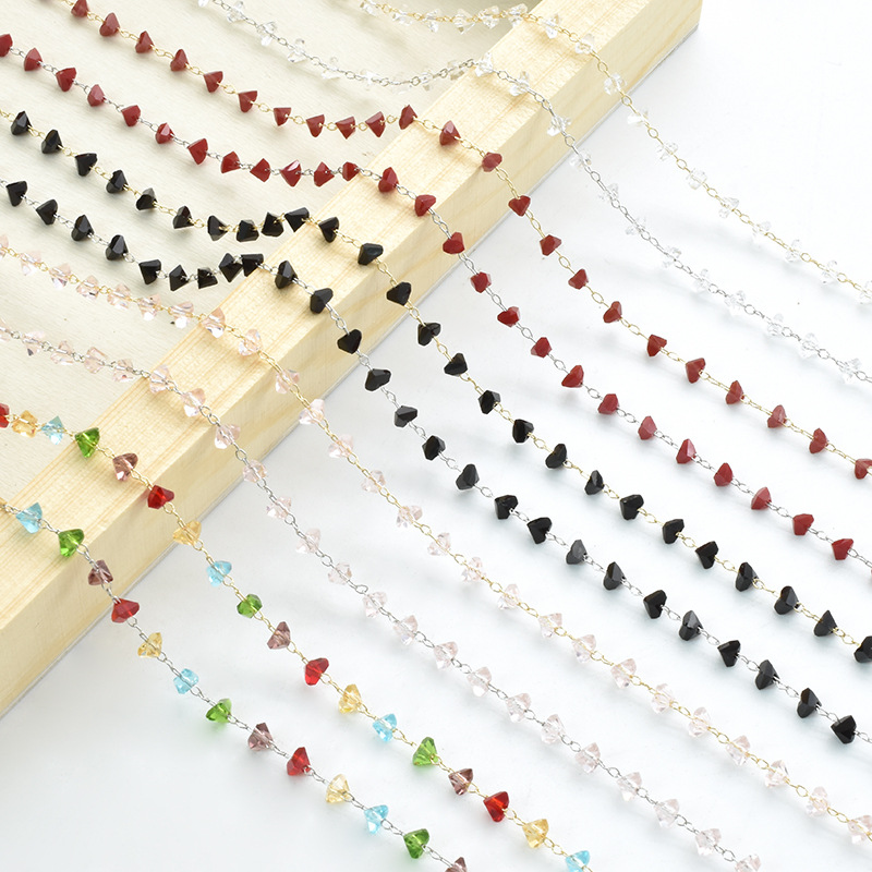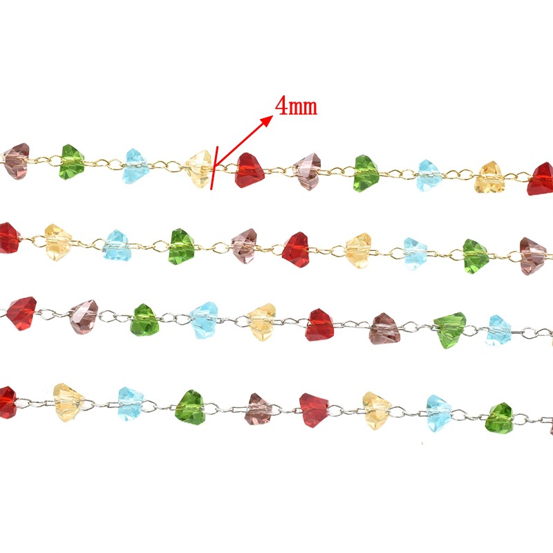Αστείου χάντρες αλυσίδα, Ορείχαλκος, με Κρύσταλλο, επιχρυσωμένο, DIY, περισσότερα χρώματα για την επιλογή, 4mm, Sold Με m