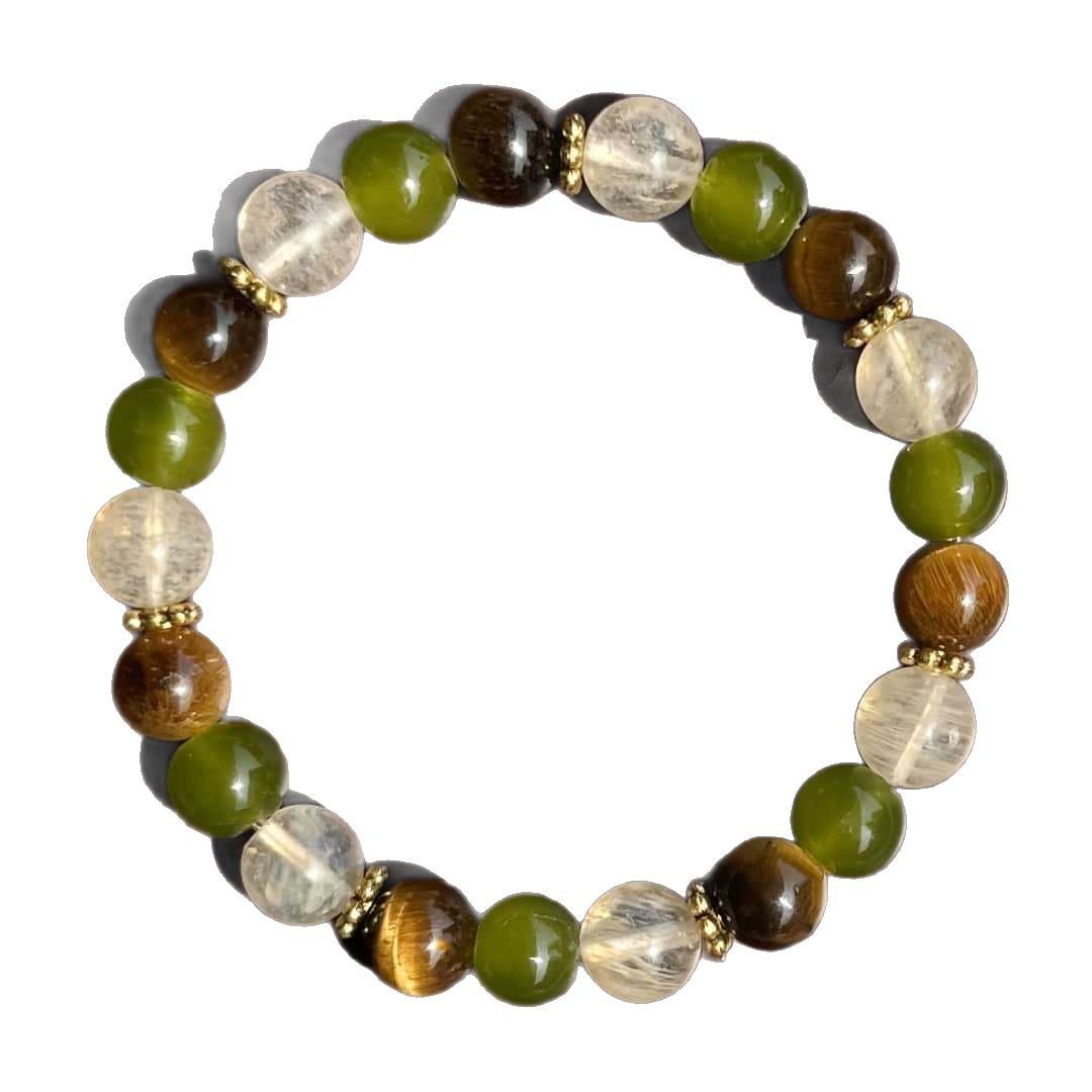 Βραχιόλια Gemstone, Μάτι της Τίγρης, με Prehnite & Clear Quartz, χρώμα επίχρυσο, κοσμήματα μόδας, περισσότερα χρώματα για την επιλογή, Sold Με PC