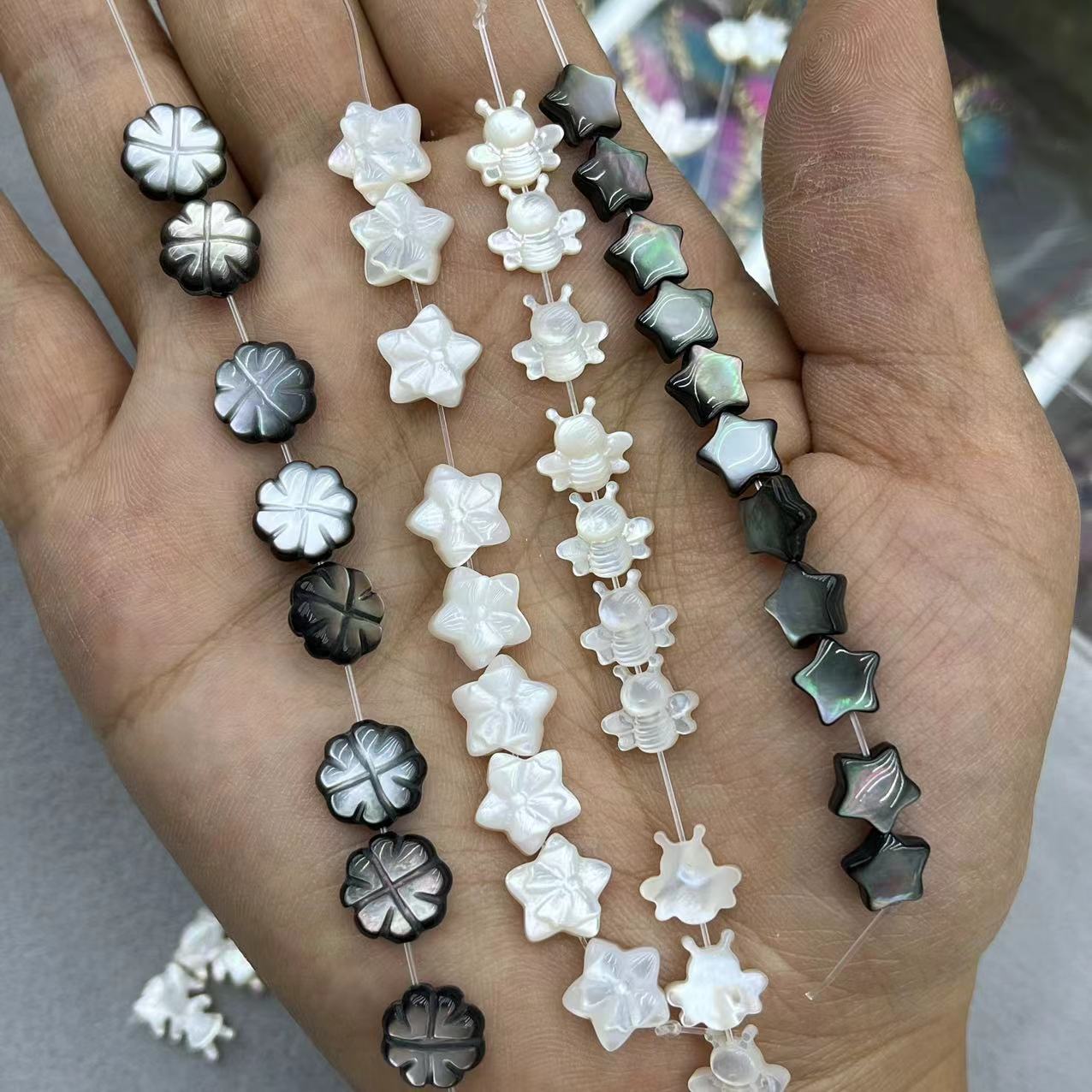 1:10mm flowers2:8mm five-pointed star black shell3:8mm five-pointed star white shell4:10mm five-pointed star5:12*13MM peace dove6:8*8.5MM bee7:7*12MM girl8:7*12MM boy