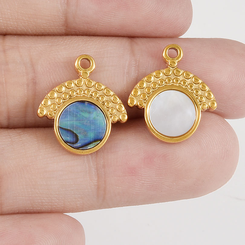 304 από ανοξείδωτο χάλυβα Κρεμαστό κόσμημα, με Λευκό Shell & Abalone Shell, επιχρυσωμένο, DIY, περισσότερα χρώματα για την επιλογή, 10PCs/τσάντα, Sold Με τσάντα