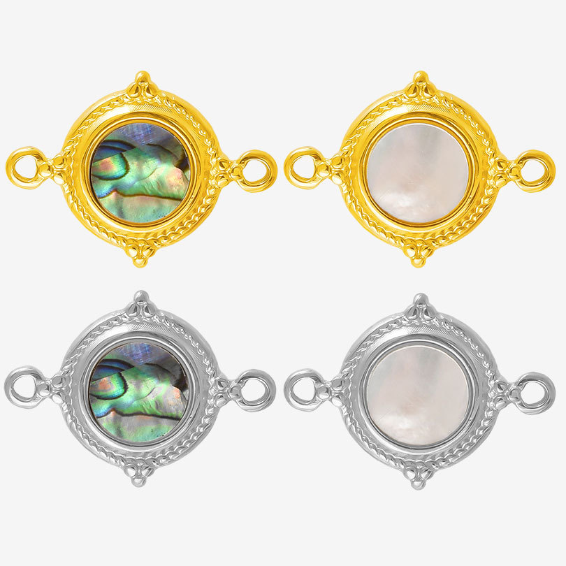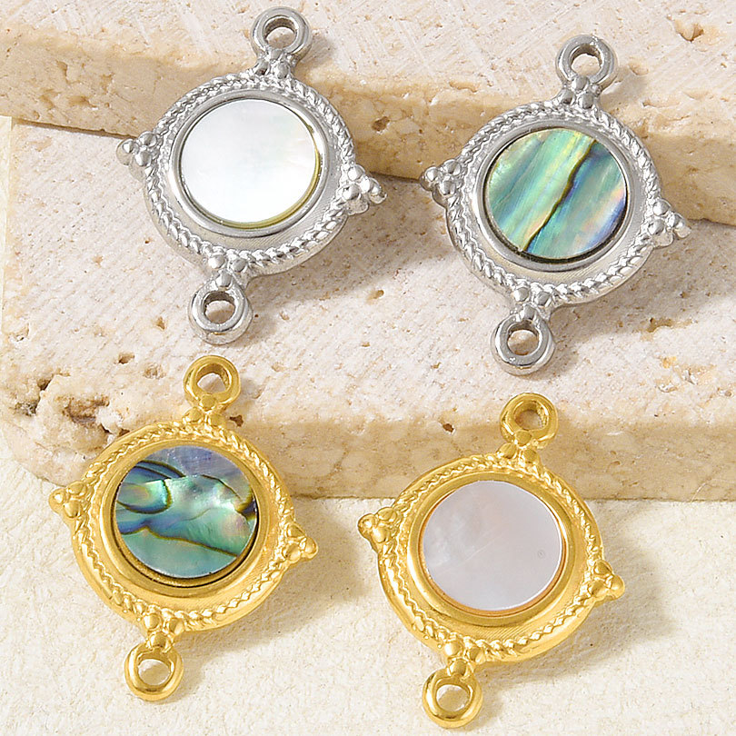 304 από ανοξείδωτο χάλυβα Κρεμαστό κόσμημα, με Λευκό Shell & Abalone Shell, επιχρυσωμένο, DIY & διπλό τρύπα, περισσότερα χρώματα για την επιλογή, 10PCs/τσάντα, Sold Με τσάντα