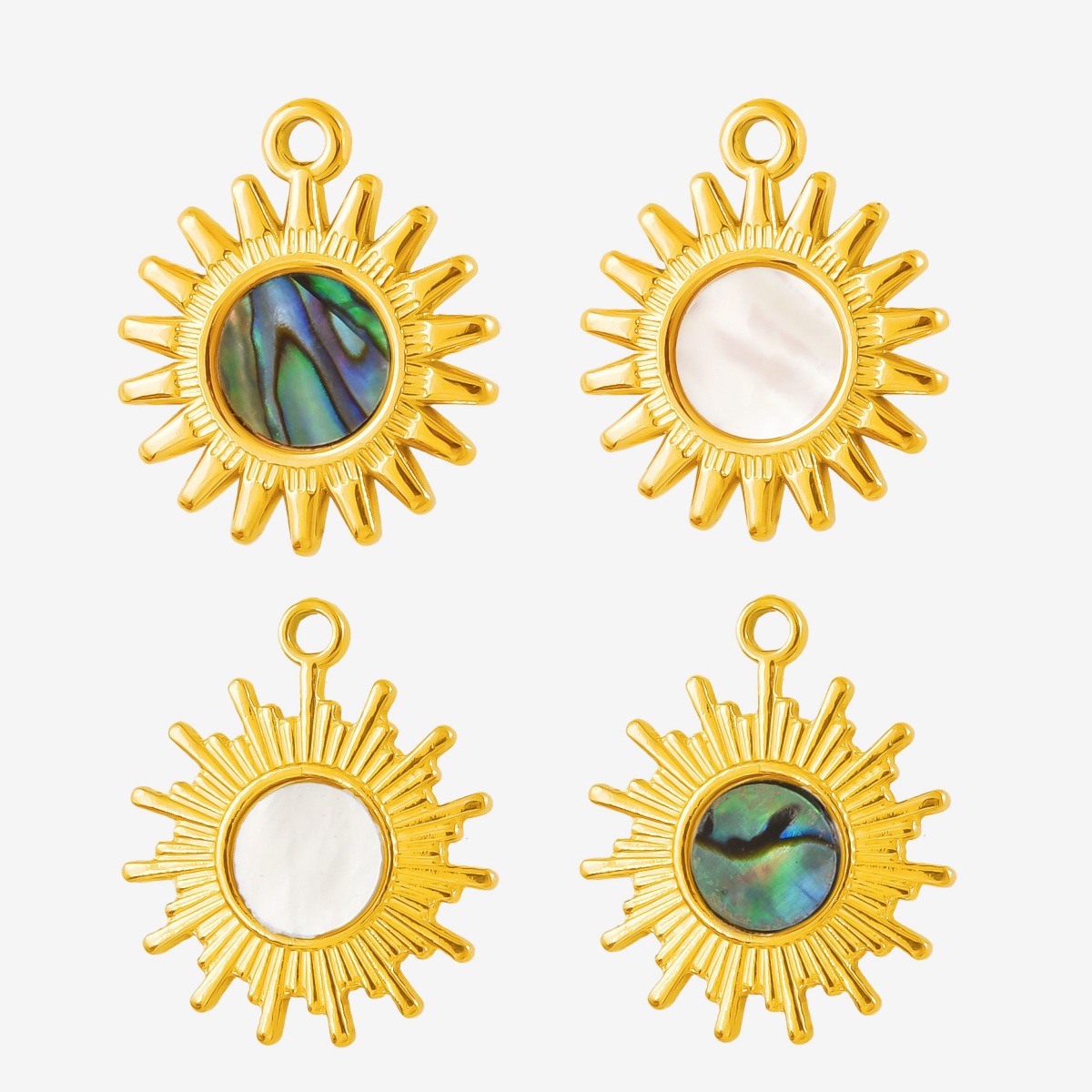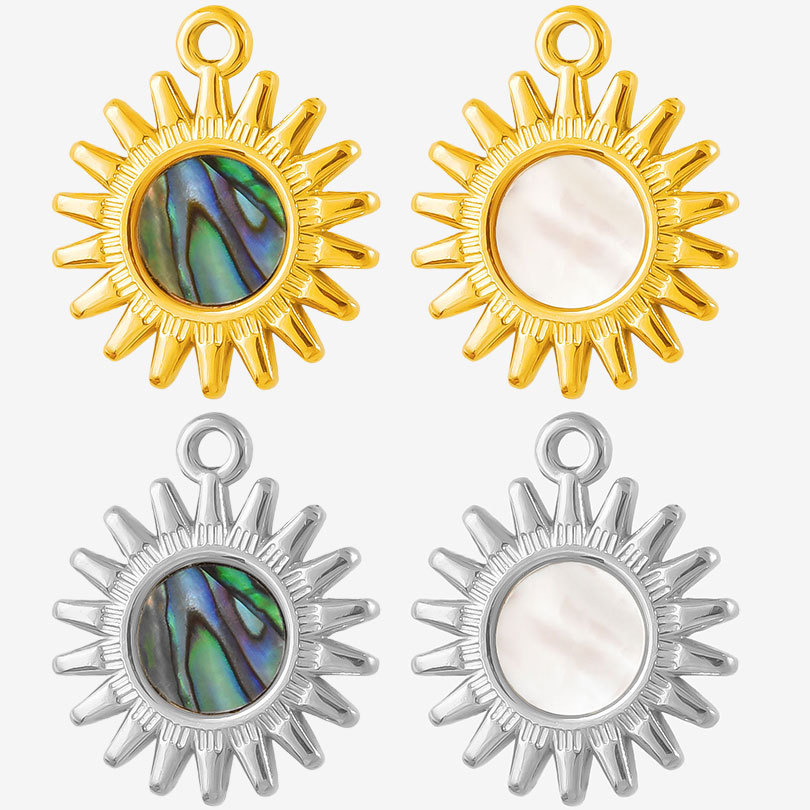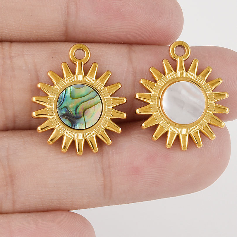304 από ανοξείδωτο χάλυβα Κρεμαστό κόσμημα, με Λευκό Shell & Abalone Shell, Γύρος, επιχρυσωμένο, DIY, περισσότερα χρώματα για την επιλογή, Sold Με PC