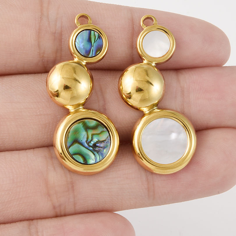 Μενταγιόν Shell, 304 από ανοξείδωτο χάλυβα, με Λευκό Shell & Abalone Shell, επιχρυσωμένο, DIY, περισσότερα χρώματα για την επιλογή, 10PCs/τσάντα, Sold Με τσάντα