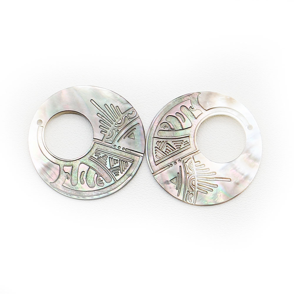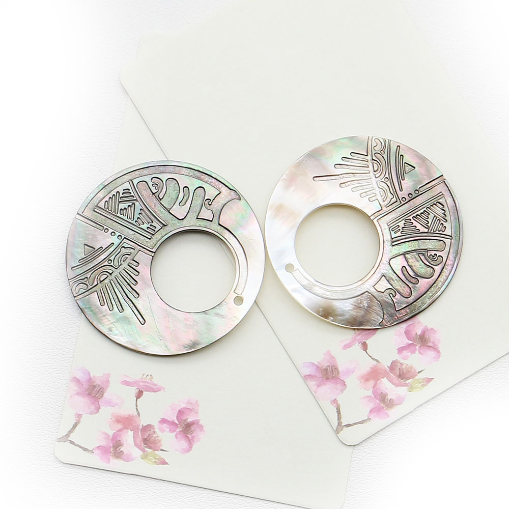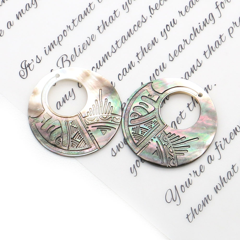 Μενταγιόν Shell, Μαύρο + χείλος + κέλυφος, Γύρος, Σκαλιστή, Φυσικό & DIY & κοίλος, 40x40mm, Sold Με PC