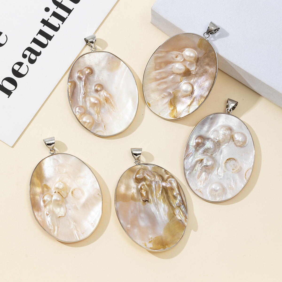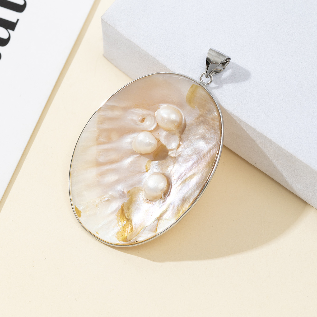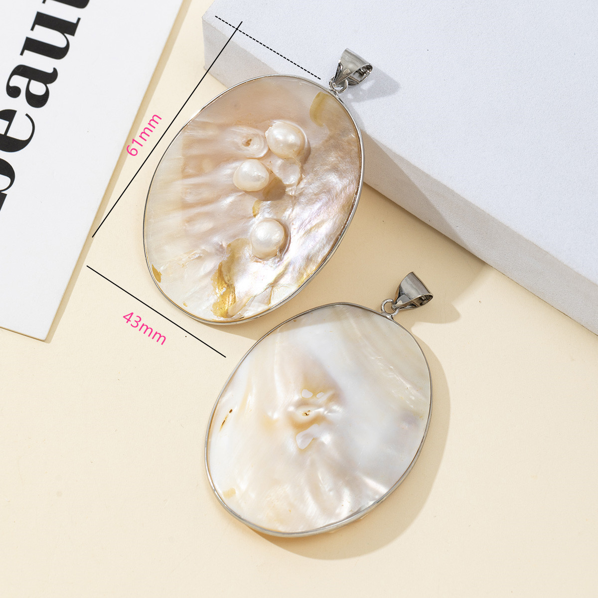 Μενταγιόν Shell, Ορείχαλκος, με Κέλυφος & Μαργαριτάρι του γλυκού νερού, DIY, νικέλιο, μόλυβδο και κάδμιο ελεύθεροι, 43x61mm, Sold Με PC
